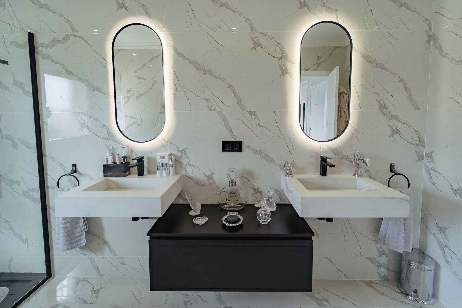 Upon entering the grounds through either the automatic gates leading to the driveway and garage or the pedestrian entrance leading to the front door, you are presented with a grand solid wood entrance. Leading to the lobby area, from here you can marvel at the immaculate glass paneled staircase and also gaze through to the magnificent open lounge / dining area. This view through the lounge also gives clues of open garden and pool views thanks to the well thought out glass fronted upper terrace areas to the rear outside.
