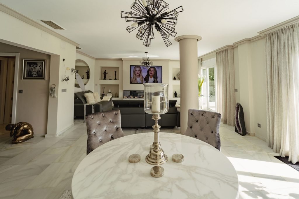 This impressive home is located in Nagüeles, one of the most established and sought after residential areas of Marbella. It is a very mature residential area with many lovely old trees and is situated just two minutes above the Golden Mile, next to Sierra Blanca and within a short driving distance to the beach and Puerto Banús.