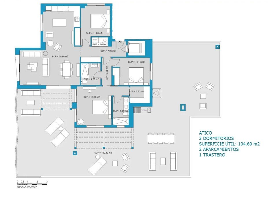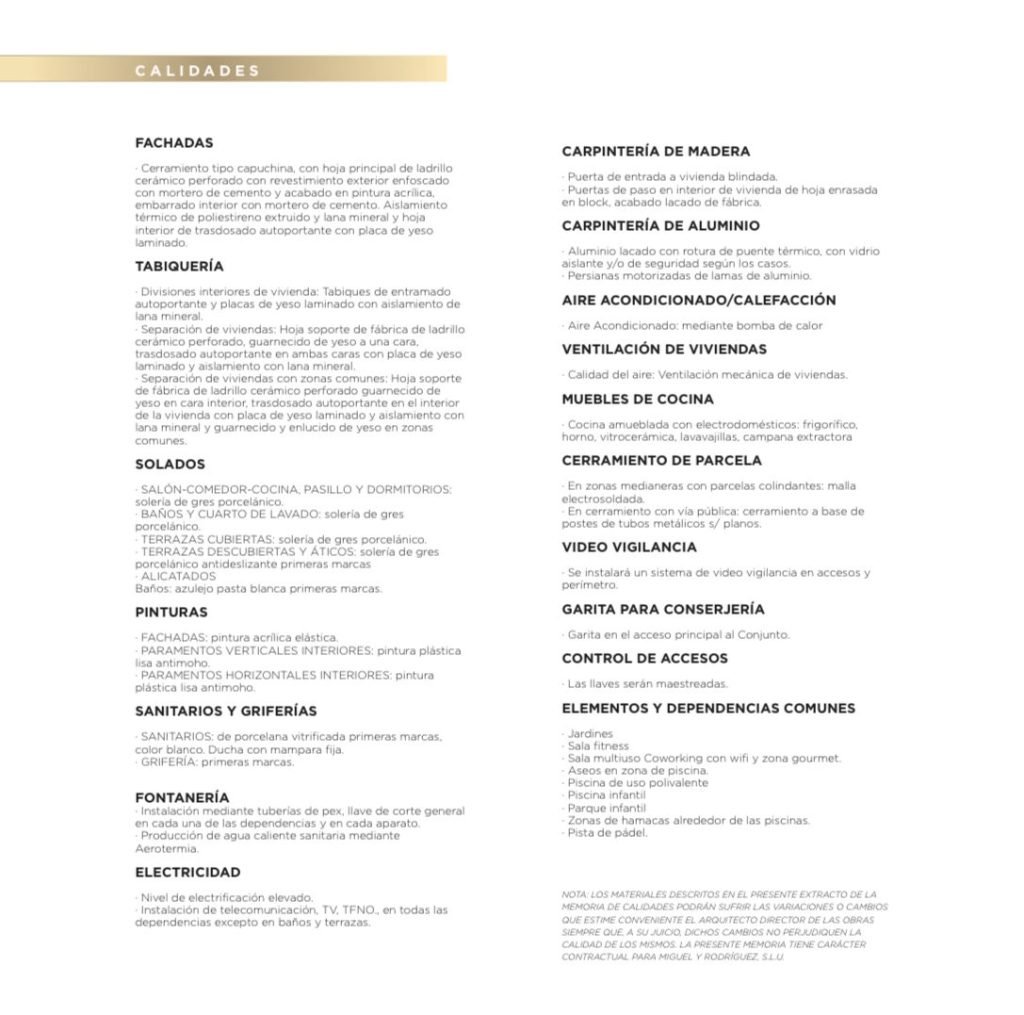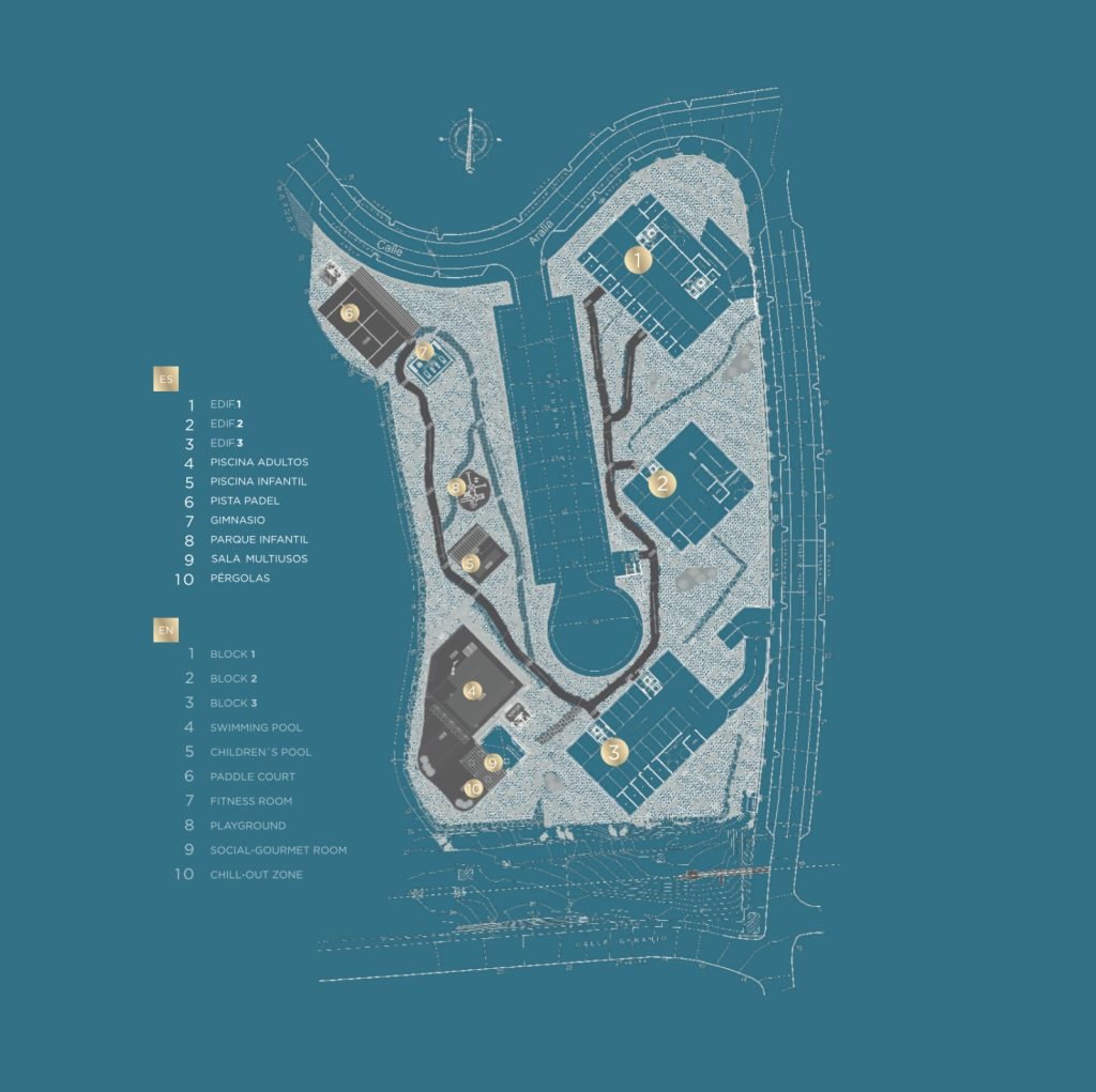 In this urbanization we are going to find 7000m2 of common areas with swimming pools (infinity pool and children’s pool, as well as a children’s playground), gardens, paddle tennis court, gym, and concierge since it is a closed area and will have this service.