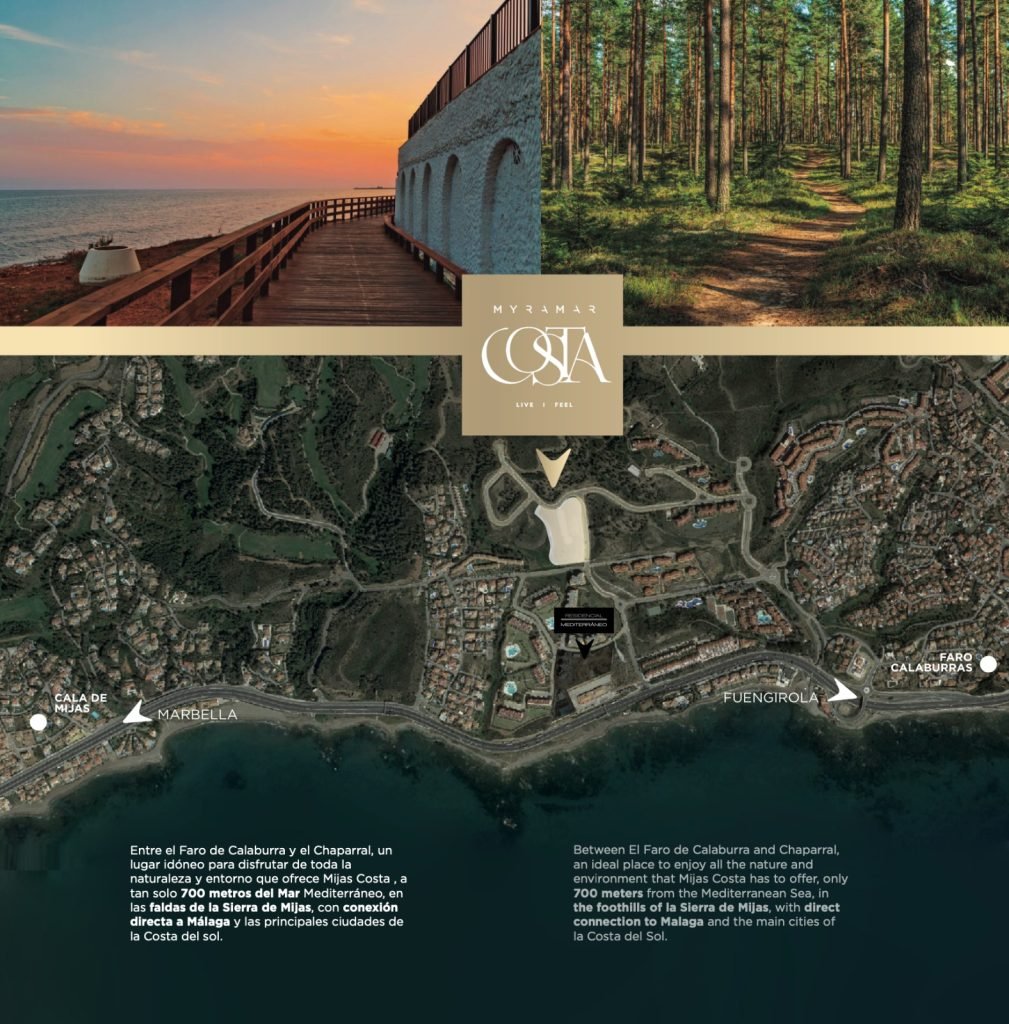 Myramar Costa is a project with a total of 55 new-build apartments in Mijas from 1 to 3 bedrooms, with different orientations, distributed in 3 buildings. From its terraces you can enjoy sunrise and sunset, the Mediterranean Sea and the neighboring pine forests.