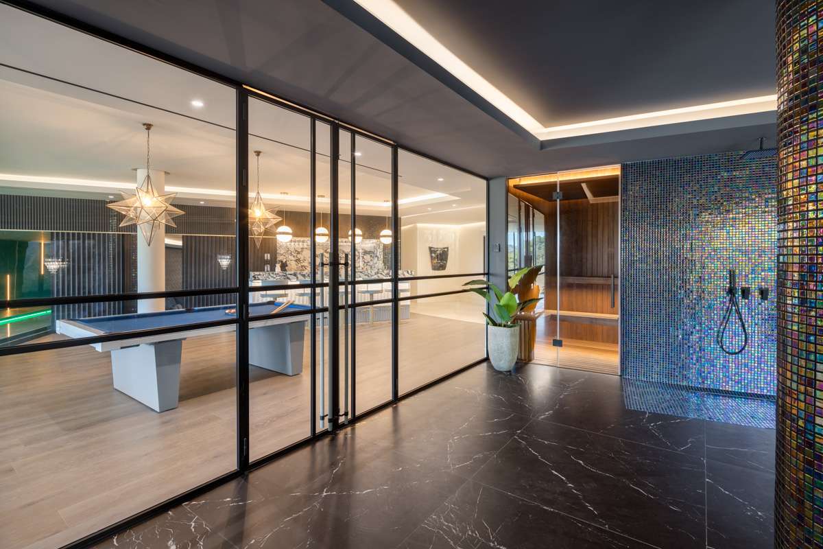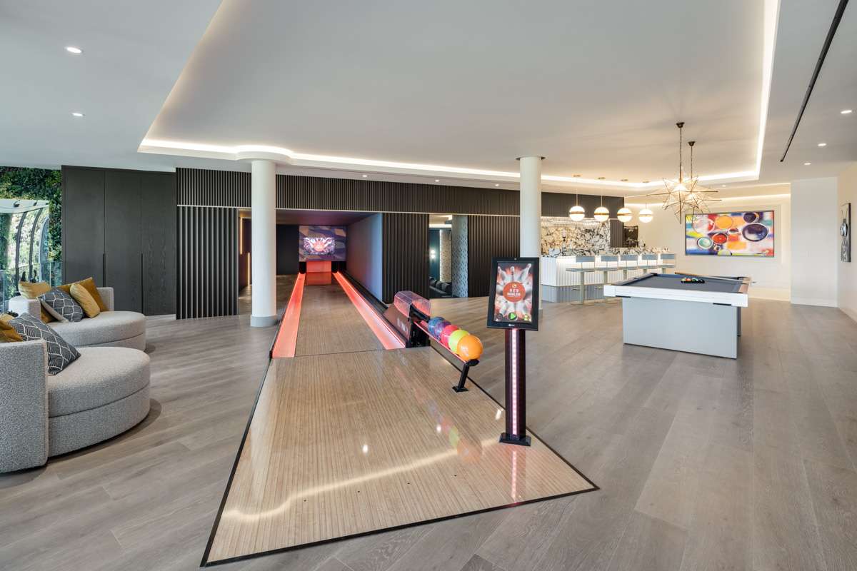 La propiedad consta de una cocina gourmet de última generación con fuentes de agua externas, techos de doble altura, un baño principal diseñado por un diseñador de moda, una zona de juegos con una bolera, una terraza en la azotea, vistas al mar sin obstáculos, y club de playa piscina cubierta / al aire libre son todos los aspectos de la villa.