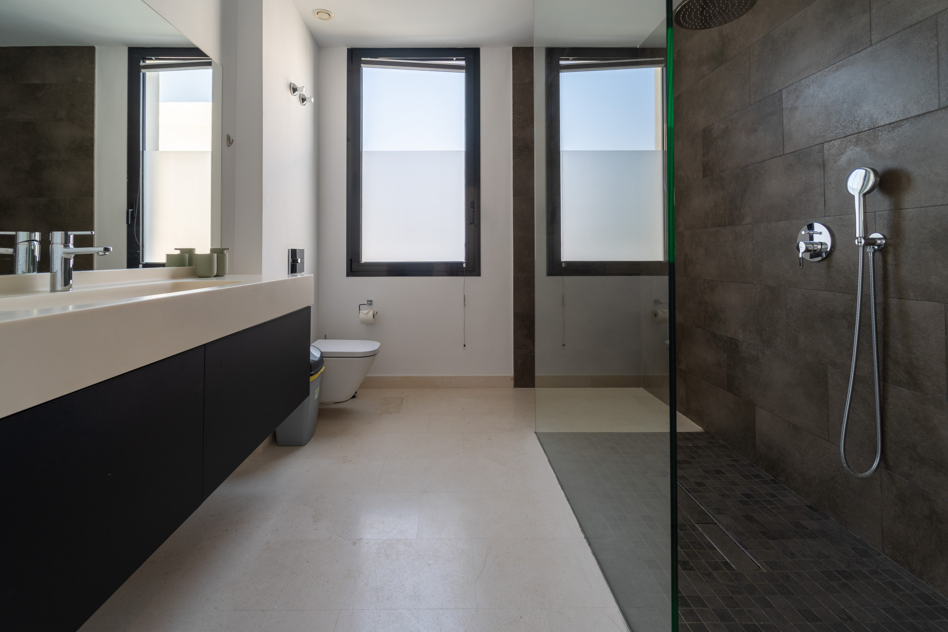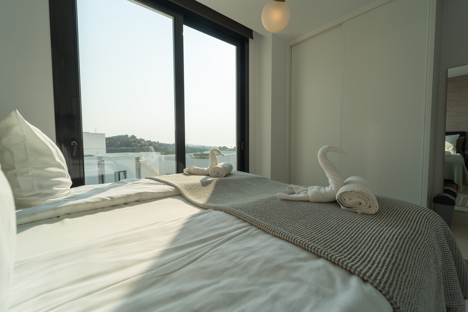En la primera planta encuentras 3 dormitorios. El dormitorio principal incluye un vestidor, baño en suite con una generosa ducha a ras de suelo y una terraza privada que muestra las hermosas vistas. Hay 2 dormitorios de invitados más que comparten un baño.