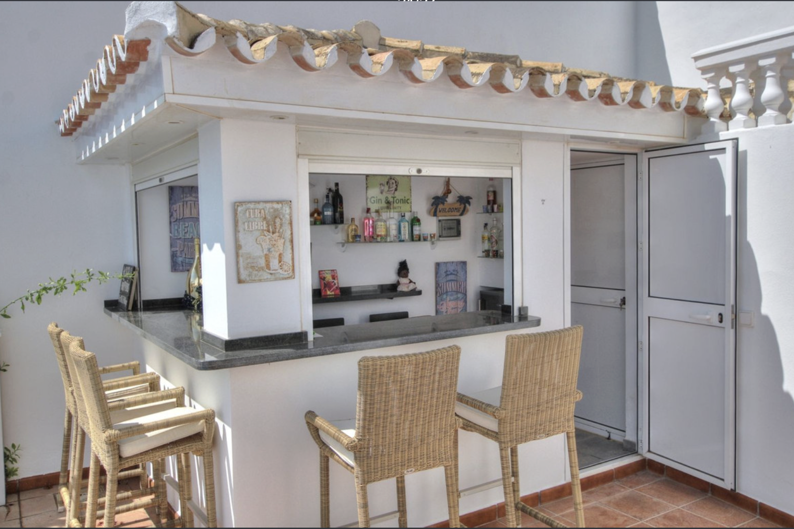 La villa cuenta con cuatro dormitorios y tres baños, distribuidos en una superficie construida de 185 m², complementados por una generosa terraza de 80 m² y una parcela privada de 400 m². El interior se presenta completamente amueblado y en excelente estado, con una cocina totalmente equipada y armarios empotrados que optimizan el espacio. El sistema de aire acondicionado garantiza el máximo confort durante todo el año, y la alarma proporciona seguridad adicional.
