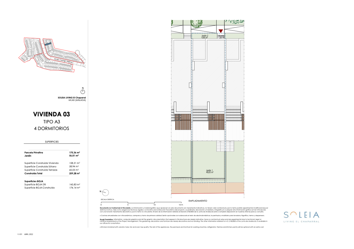 - Parcela m²: 175