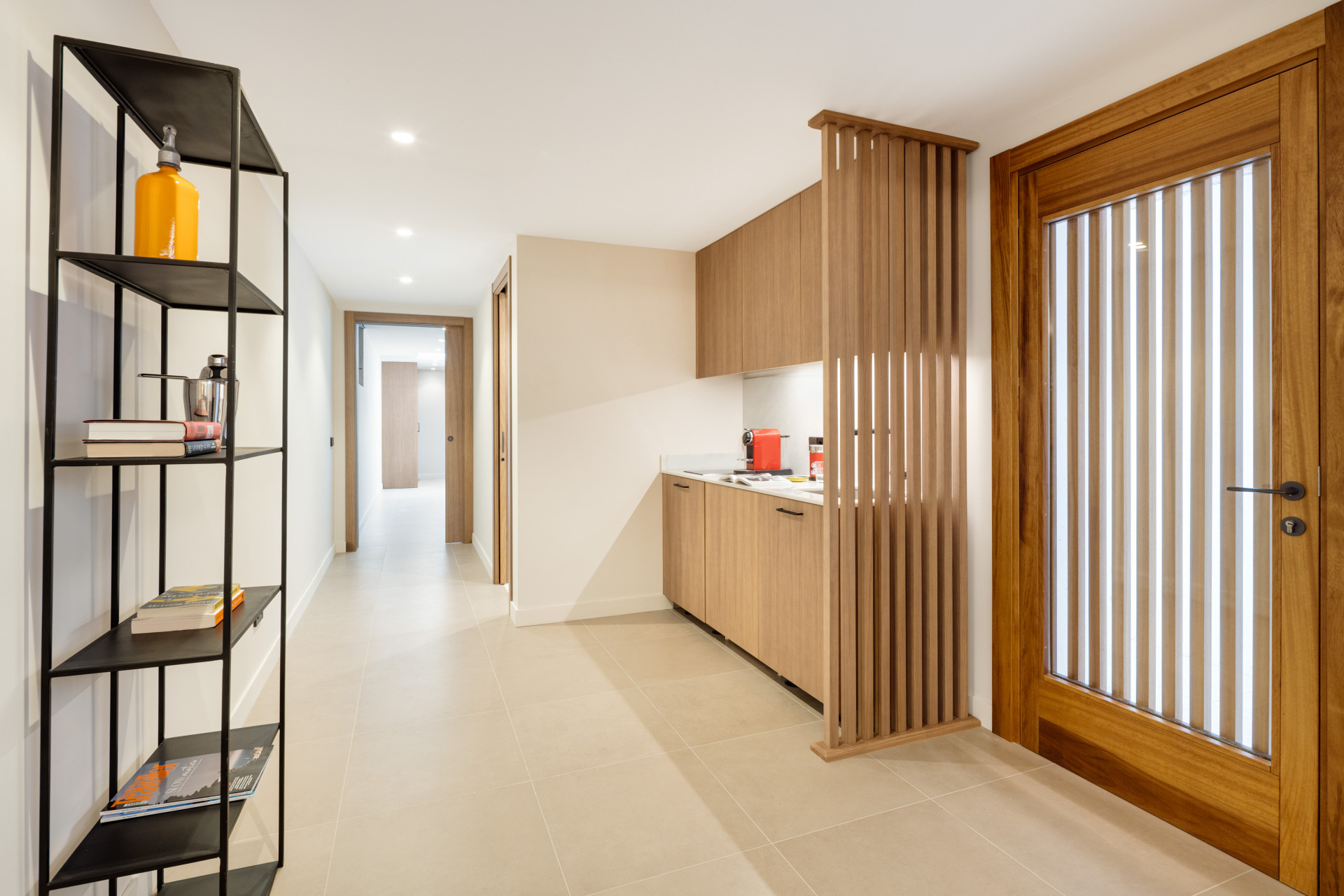 Acceso independiente al apartamento de invitados (planta baja) con cocina y baño