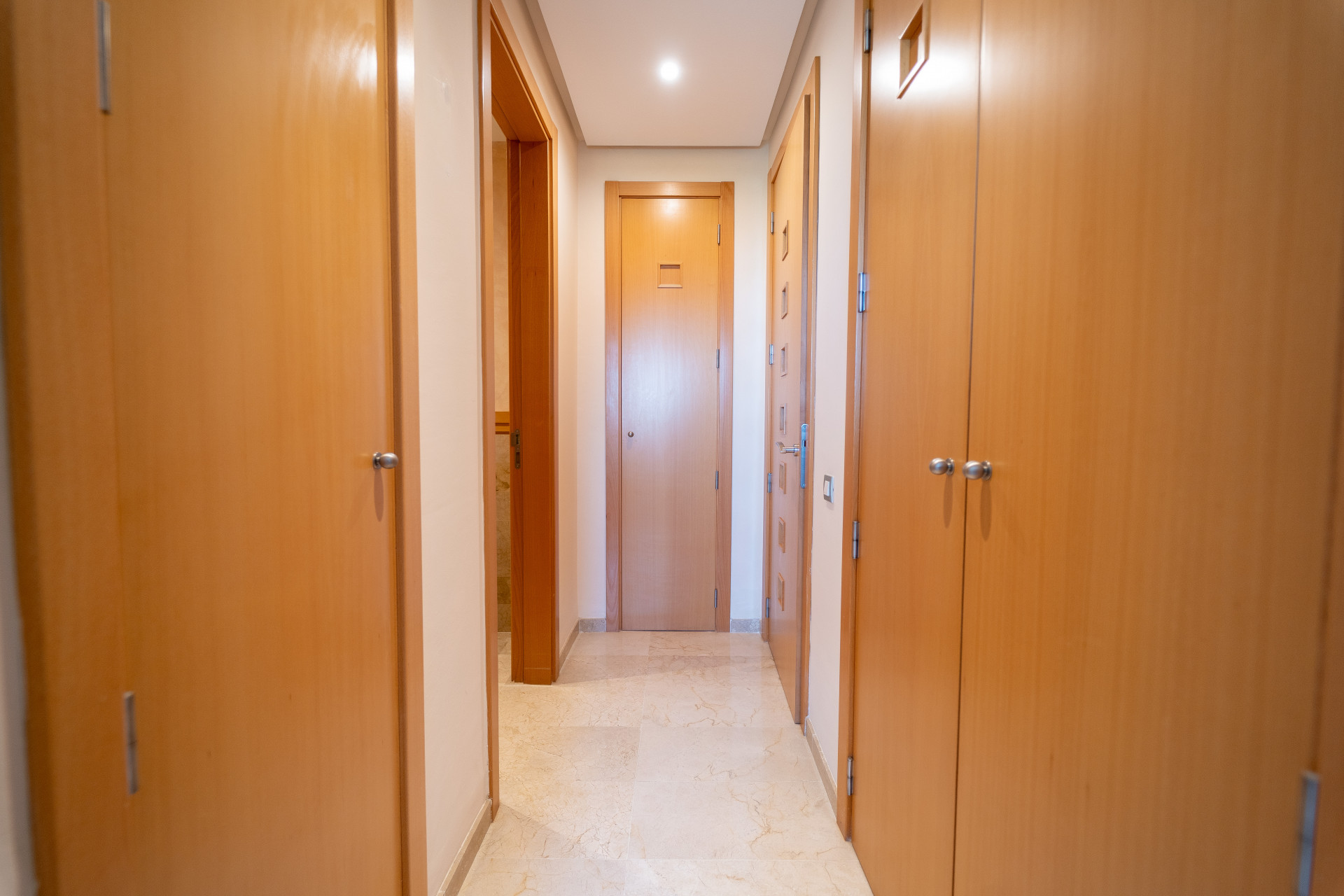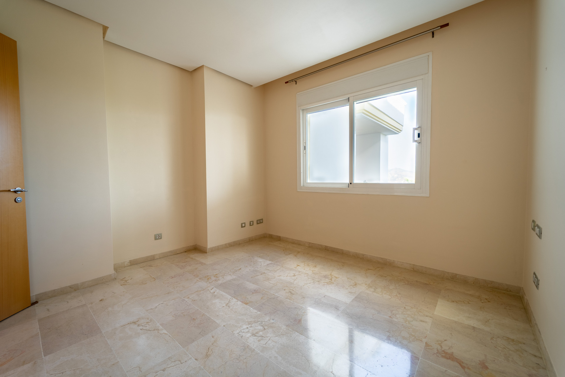 La vivienda cuenta con tres amplios dormitorios y tres baños completos, distribuidos en una superficie construida de 155 m². El salón principal se abre a una terraza privada de 32 m², ideal para disfrutar de las vistas panorámicas y del clima mediterráneo. La cocina está completamente equipada y presenta acabados de alta gama, mientras que los suelos de mármol aportan un toque de distinción y elegancia en todas las estancias. Los armarios empotrados y el trastero ofrecen soluciones prácticas de almacenamiento, optimizando el espacio disponible.