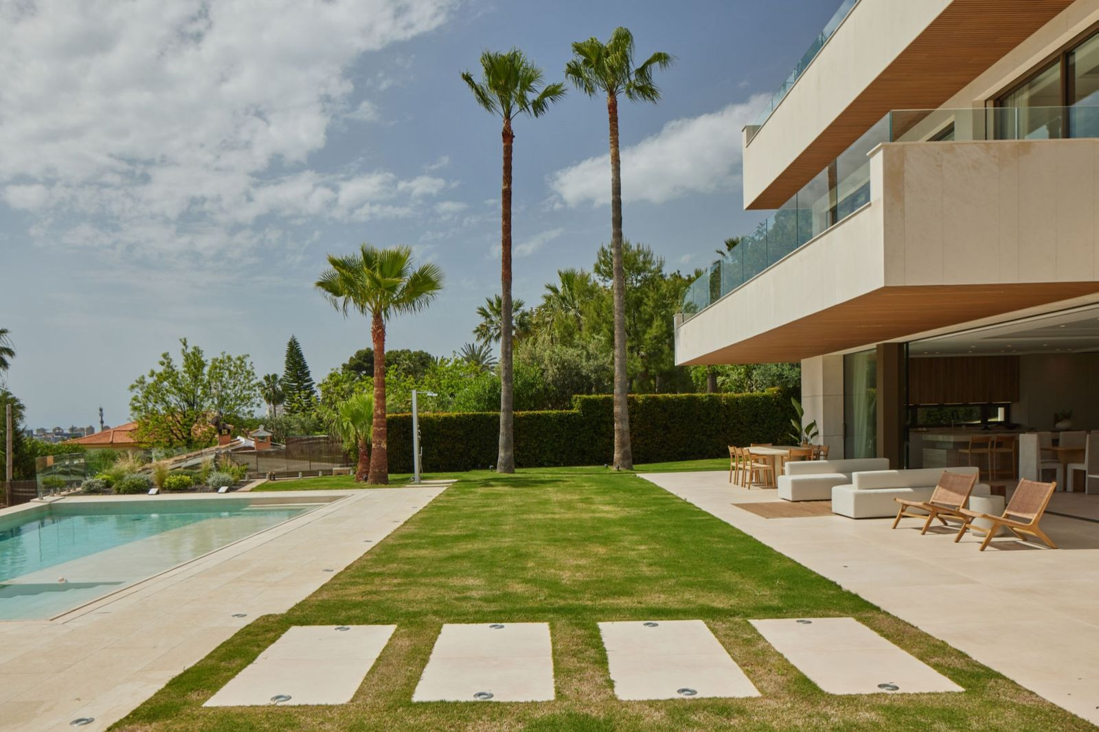 El diseño de la vivienda ha sido cuidadosamente planificado para aprovechar al máximo la luz natural y las vistas, integrando zonas de estar, comedor y cocina en un espacio abierto y elegante. Los acabados de lujo se aprecian en cada detalle, desde los suelos hasta las carpinterías, reflejando el alto nivel de la propiedad. Además, la villa ofrece amplias terrazas y jardines privados, ideales para disfrutar del clima soleado de Málaga y organizar reuniones al aire libre.