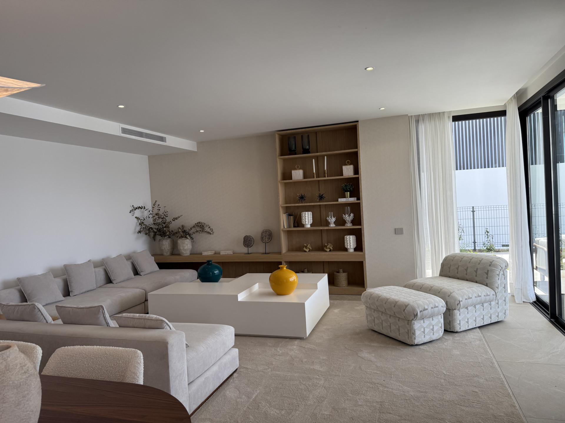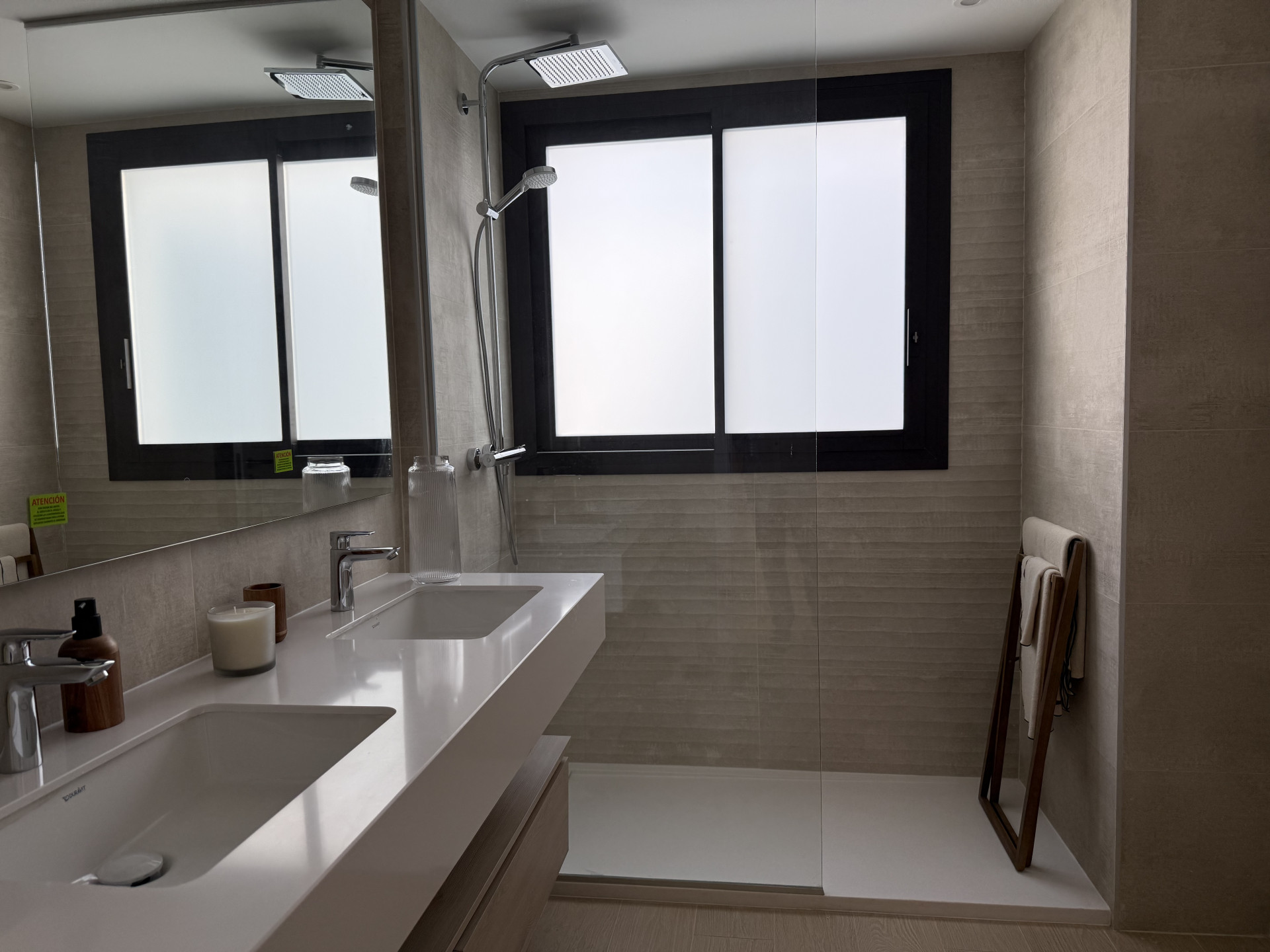 La villa cuenta con una superficie construida de 470m², de los cuales 234m² corresponden al interior y 235m² a las amplias terrazas privadas. Dispone de cuatro dormitorios espaciosos, tres baños completos y un aseo adicional, diseñados con acabados de alta calidad. El interior está equipado con aire acondicionado, armarios empotrados y persianas eléctricas, garantizando comodidad y funcionalidad en cada rincón. Además, la propiedad es completamente accesible para personas con movilidad reducida gracias a la inclusión de un ascensor.