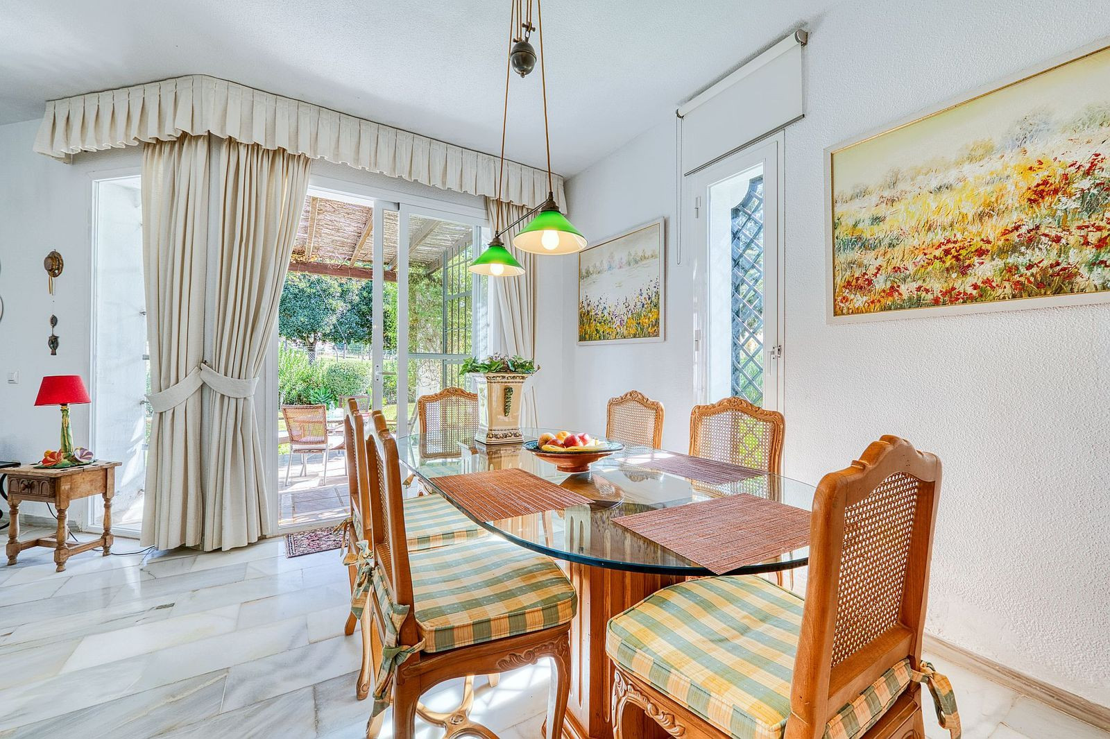En el exterior, la propiedad se asienta sobre una generosa parcela de 930 m², donde se encuentran un jardín privado cuidadosamente mantenido y una piscina exclusiva, perfectos para disfrutar del clima mediterráneo. La terraza cubierta permite relajarse al aire libre durante todo el año, mientras que el garaje privado y el trastero añaden funcionalidad y espacio de almacenamiento adicional.