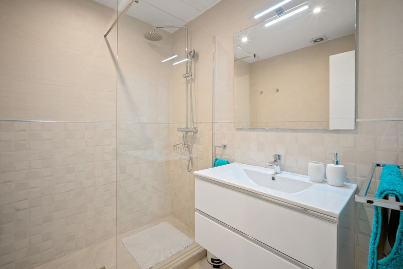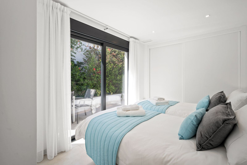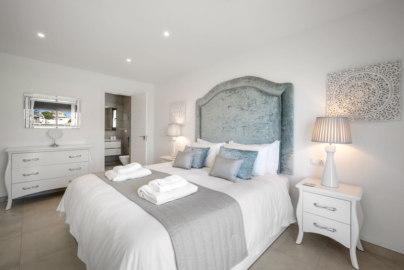 El exterior de la villa es igualmente impresionante, con una piscina privada y un jardín que invitan a disfrutar del clima mediterráneo. La terraza cubierta y el solárium son perfectos para el entretenimiento al aire libre, complementados por una zona de barbacoa. Las vistas al jardín y a la piscina, junto con la opción de mobiliario adicional, permiten personalizar el espacio según las necesidades individuales.