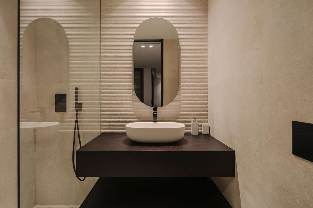 The villa sits on a spacious plot. Its design blends seamlessly with the picturesque surroundings, presenting modern elegance throughout.