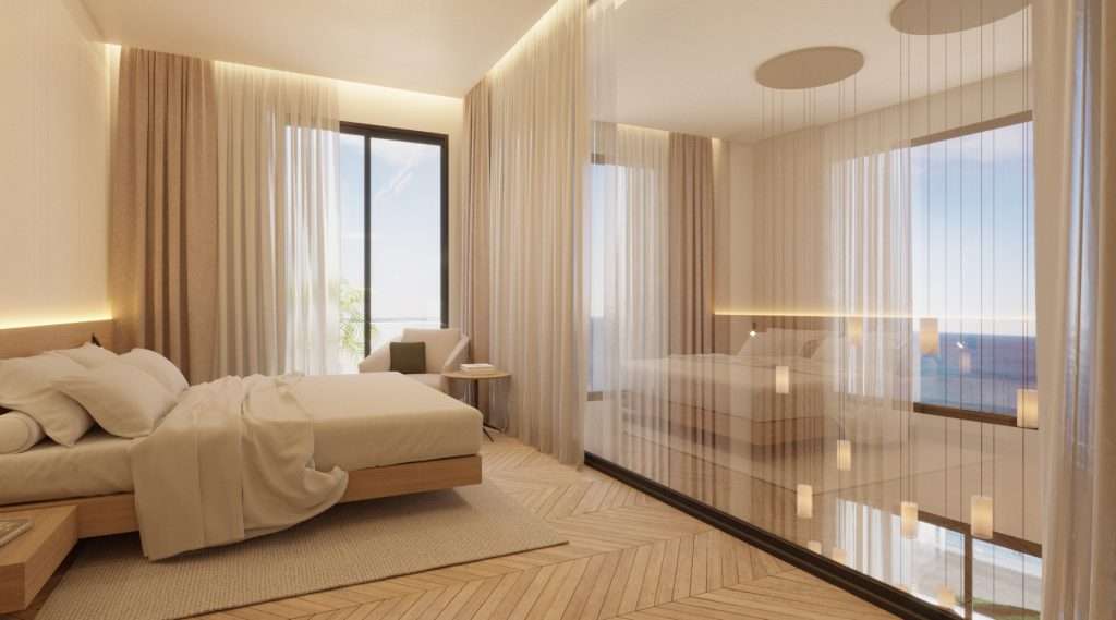 The penthouses are defined by their perfect connection to the Mediterranean. The open-plan layout and sophisticated materials create an atmosphere of understated luxury, seamlessly integrating the indoor and outdoor spaces.