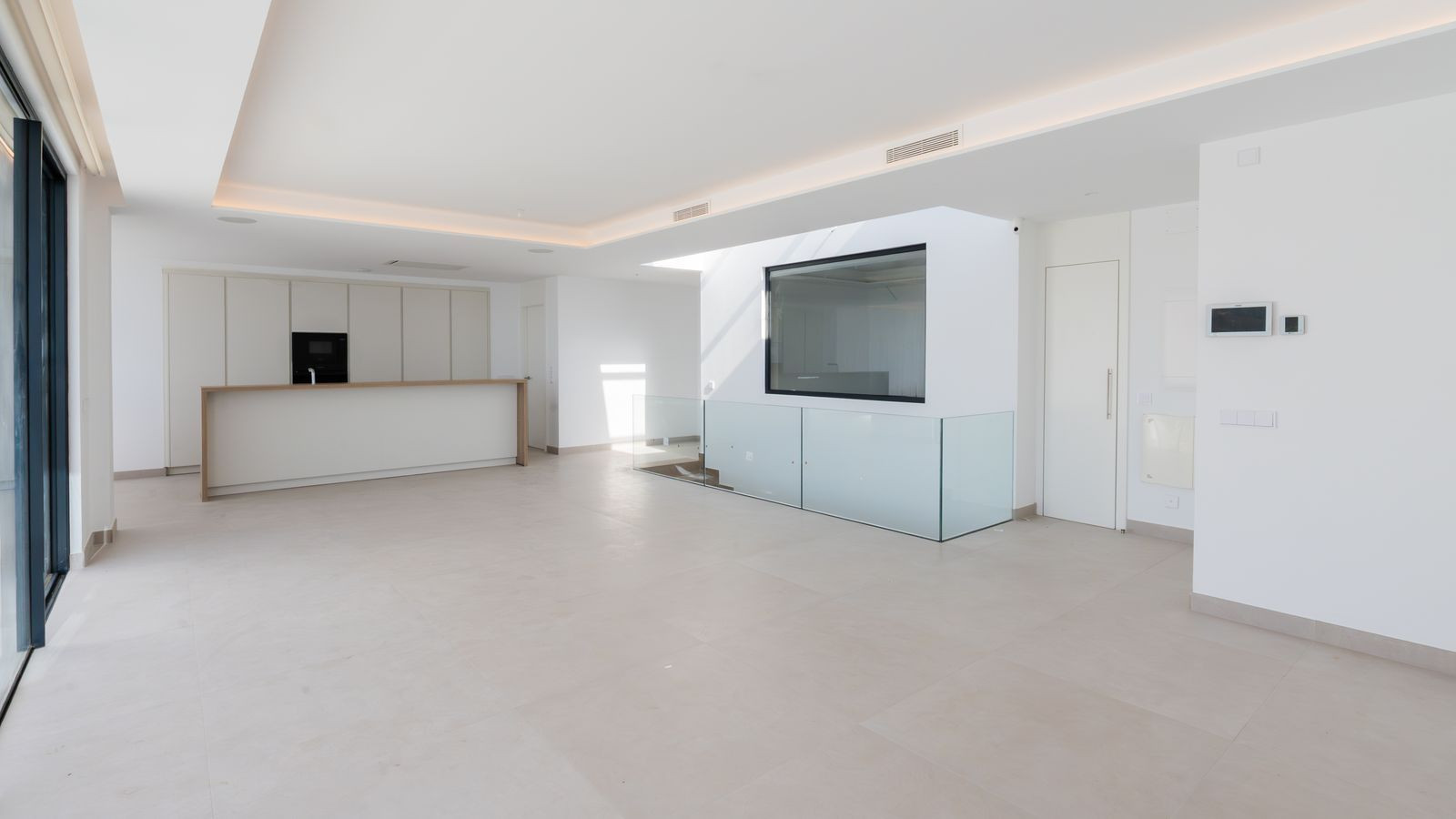 The main space combines a designer kitchen, dining room and living room in an open-plan concept that flows onto a south-west facing terrace. Here you can enjoy outdoor living on a spectacular, large terrace with a private swimming pool.