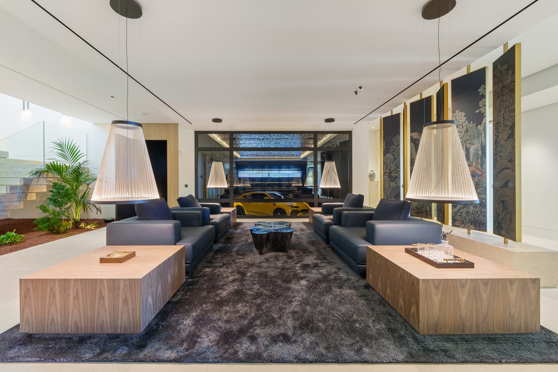 The lower level unfolds nearly 800 m² of lavish space, all designed to capture natural light and views through its generous windows. Here you’ll discover multiple lounges for relaxing or entertaining, a playroom, cinema room, fully equipped gym, and an indoor spa complete with pool and jacuzzi.
