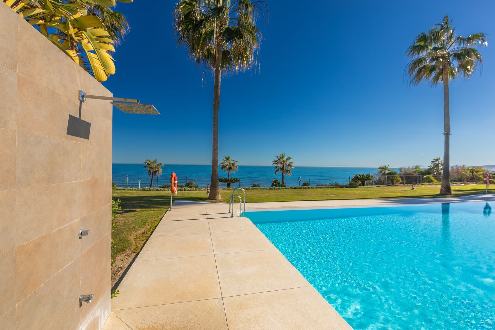 Modern-style apartment located on the beachfront, offering stunning sea views from which to enjoy spectacular sunrises, situated in the magnificent Horizon Beach development and built by the prestigious developer Taylor Wimpey, renowned for its contemporary design and high-quality finishes. The impeccably maintained community provides direct beach access, lush Mediterranean gardens, and an elegant heated outdoor pool for year-round enjoyment, along with refined communal areas designed for relaxation, featuring comfortable loungers and a spacious covered terrace in a privileged setting. Just a 5-minute drive from the center of Estepona and Puerto de la Duquesa, with all services close at hand, it includes a convenient underground parking space and a large storage room located right in front of the parking, making it an excellent beachfront opportunity that must be seen.