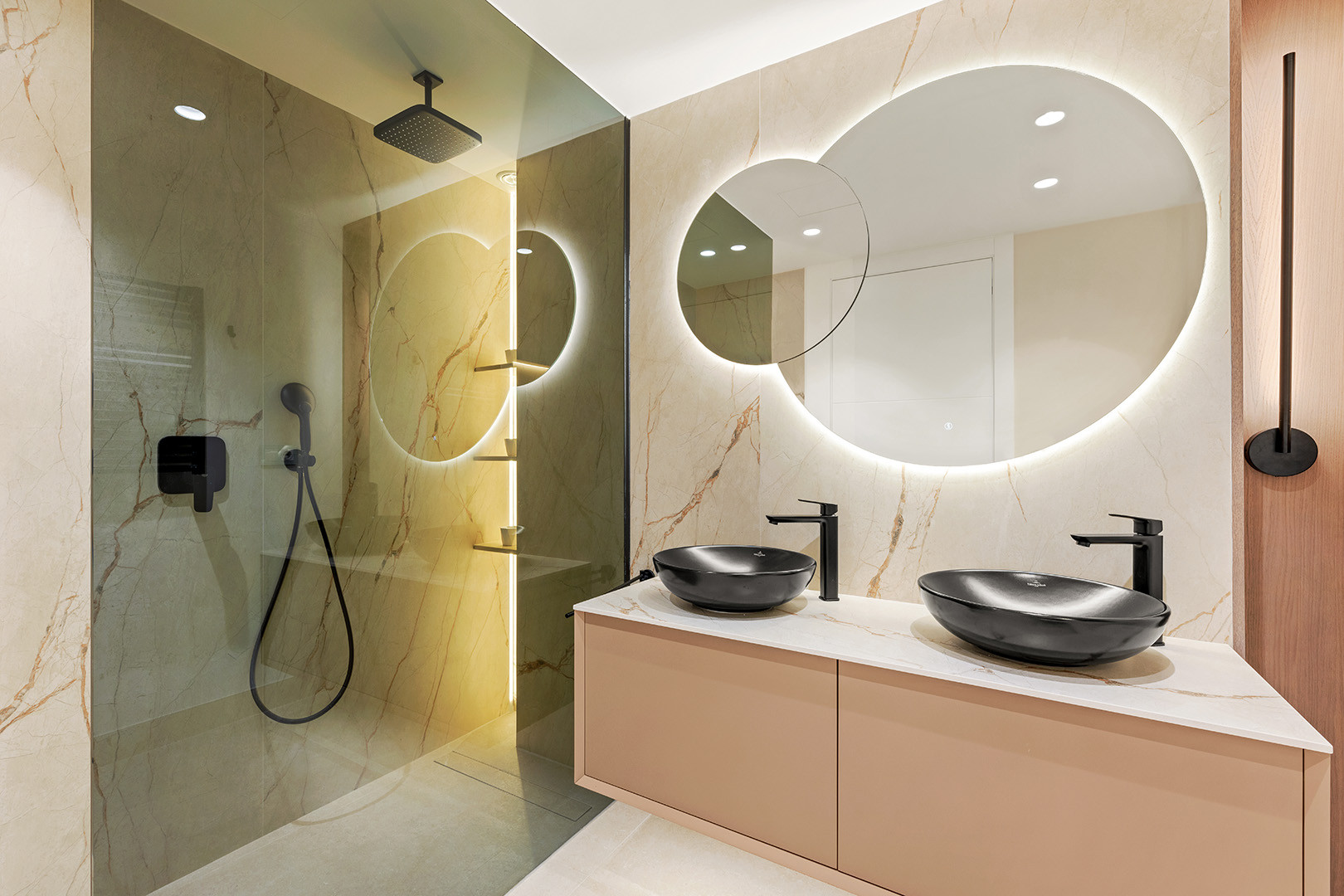 The entire upper level is dedicated to an exceptional master suite, providing a private sanctuary with stunning 180° panoramic sea views. This exclusive retreat includes its own sun terrace and a private sauna, offering the perfect setting for relaxation and rejuvenation. Residents can wake up to the gentle sound of the sea and unwind with golden sunsets each evening, enjoying total tranquillity above the coastline.