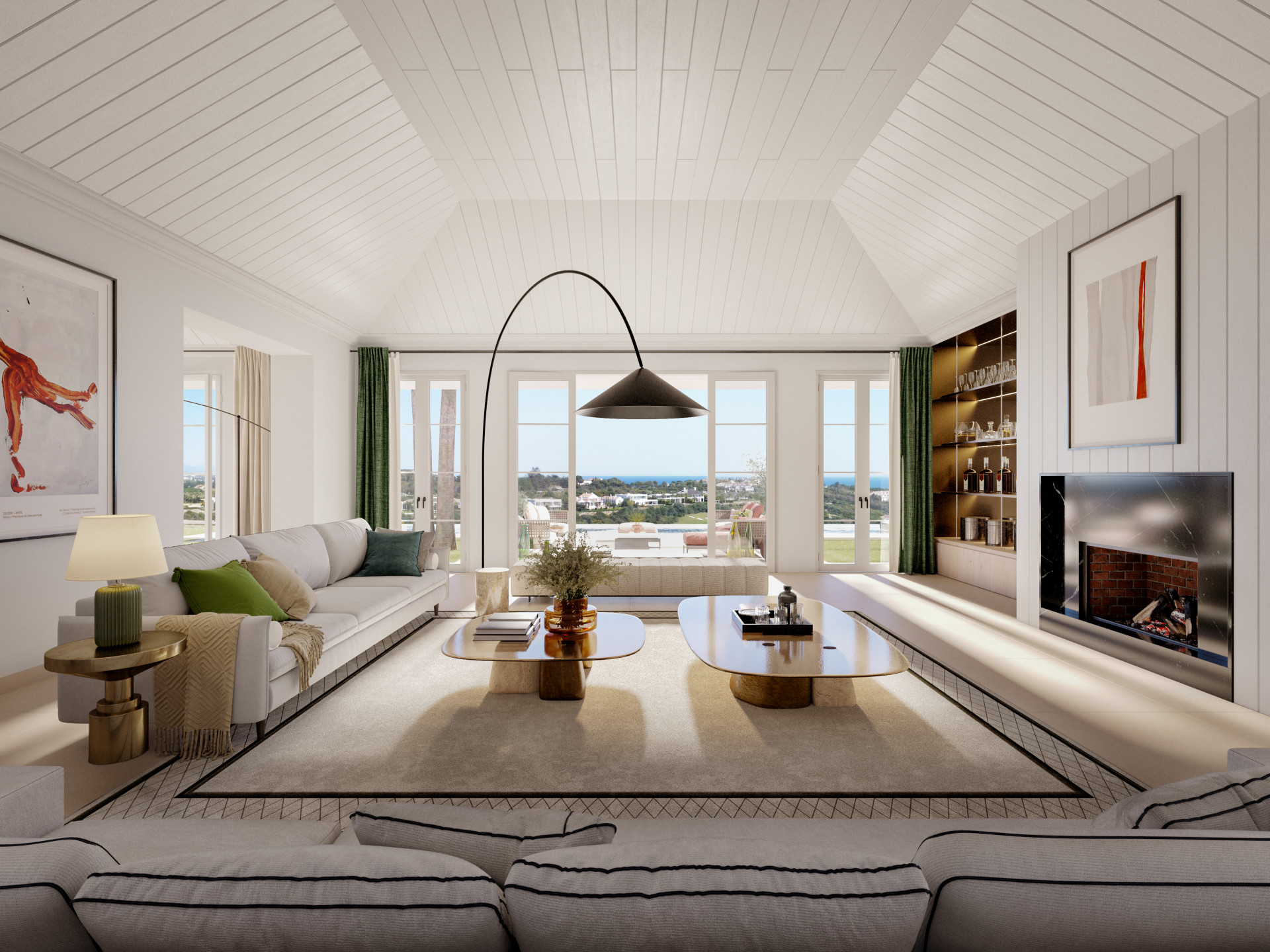 Villa 49 is an exceptional property located in the prestigious Finca Cortesin Resort, scheduled for completion in summer 2025. Its captivating architecture sets it apart, featuring a unique triangular roof with dark tiles that beautifully contrast the white exterior walls. Situated on a spacious plot, the villa offers breathtaking views of the Finca Cortesin golf course. The meticulously manicured gardens provide an enchanting backdrop and ample outdoor space for entertaining and enjoying the sunshine. The impressive infinity pool invites relaxation while taking in the surrounding views, and the integrated gazebo is perfect for outdoor seating and alfresco dining. Generous outdoor terraces cater to those who cherish time spent outdoors. The interiors exude elegance and refinement, with a neutral colour palette and tasteful decor accents. High ceilings enhance the sense of spaciousness and create an airy atmosphere. The living area seamlessly connects to the open-plan kitchen and dining area, facilitating a seamless flow between living spaces. The ground level effortlessly merges with the garden level, blurring the boundaries between indoor and outdoor living. With 4 bedrooms, each showcasing its own character and blending harmoniously with the property’s style, Villa 49 offers a sophisticated living experience. Three bedrooms are situated on the main level, while the top floor boasts a bedroom with a private balcony and stunning views. Villa 49 presents an exceptional opportunity with its intriguing architecture, refined interiors, and ample plot with breathtaking views.
