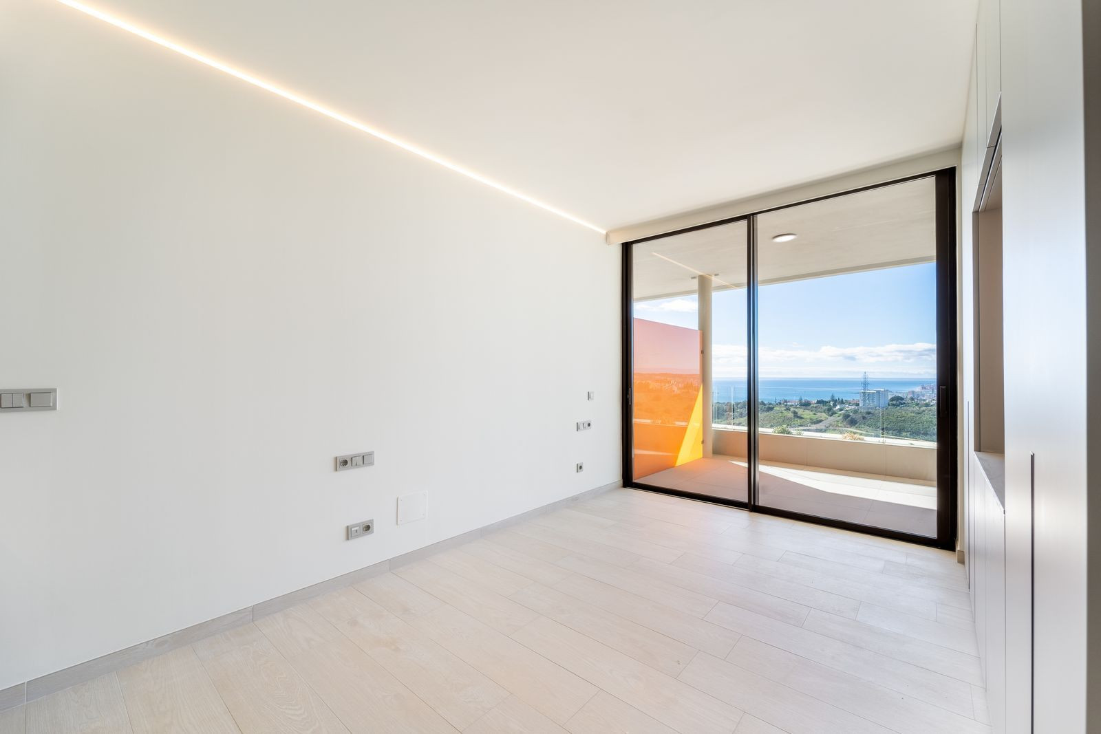 This 3-bedroom apartment is part of an exclusive residential complex at the foothills of the Sierra de Mijas mountains. Designed for modern living, it features a 36 m² terrace with amazing views of the sea and mountains. The property is finished with premium materials, including SALONI tiles, bathrooms fitted with Kaldewei, Duravit, and Hansgrohe fixtures, and a Zampieri-designed kitchen equipped with high-end appliances. Additional features include two parking spaces, a storage room, underfloor heating in the bathrooms, and a smart home system.