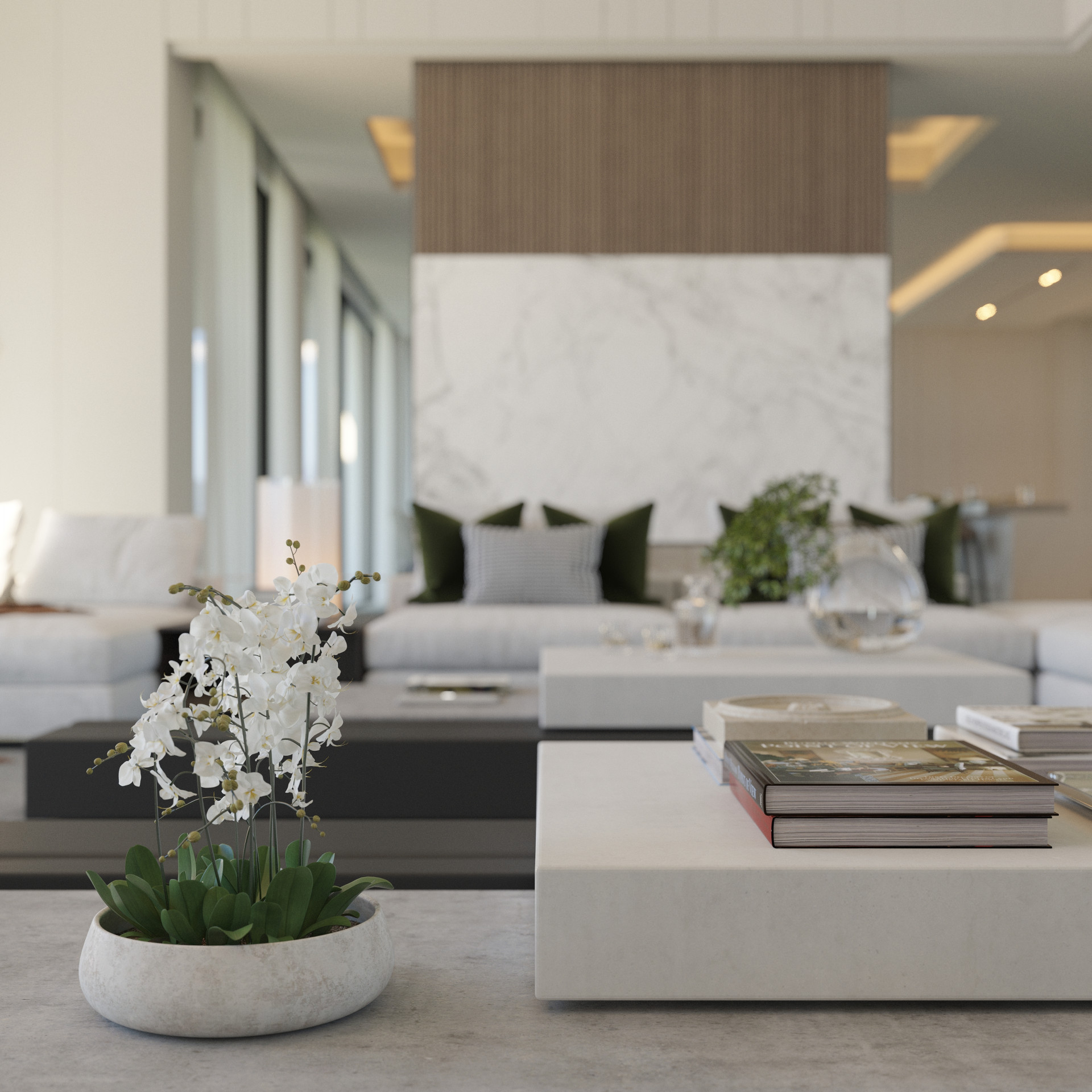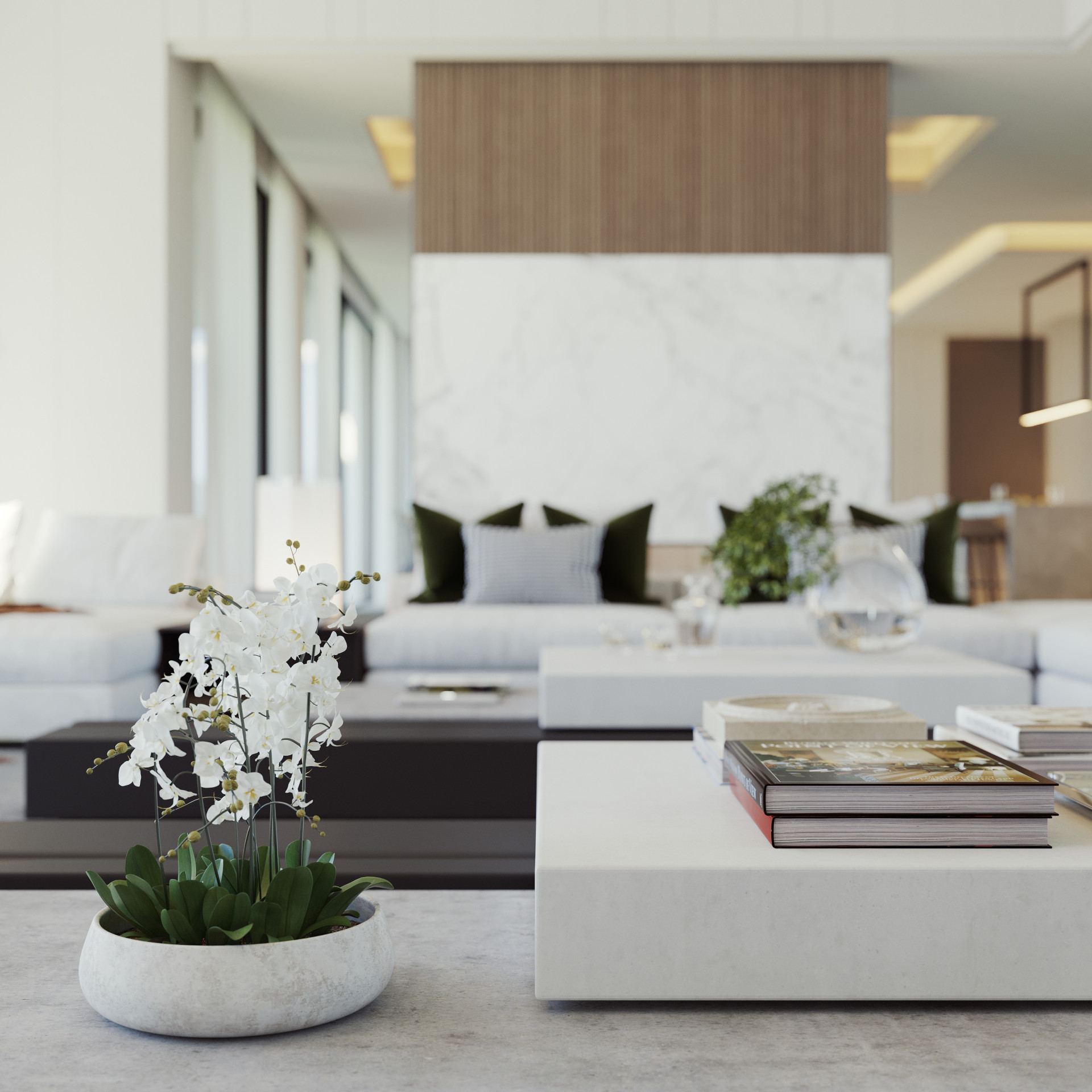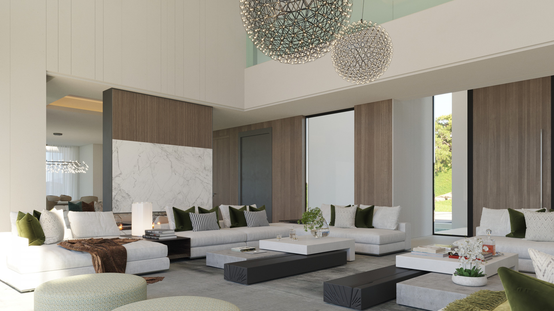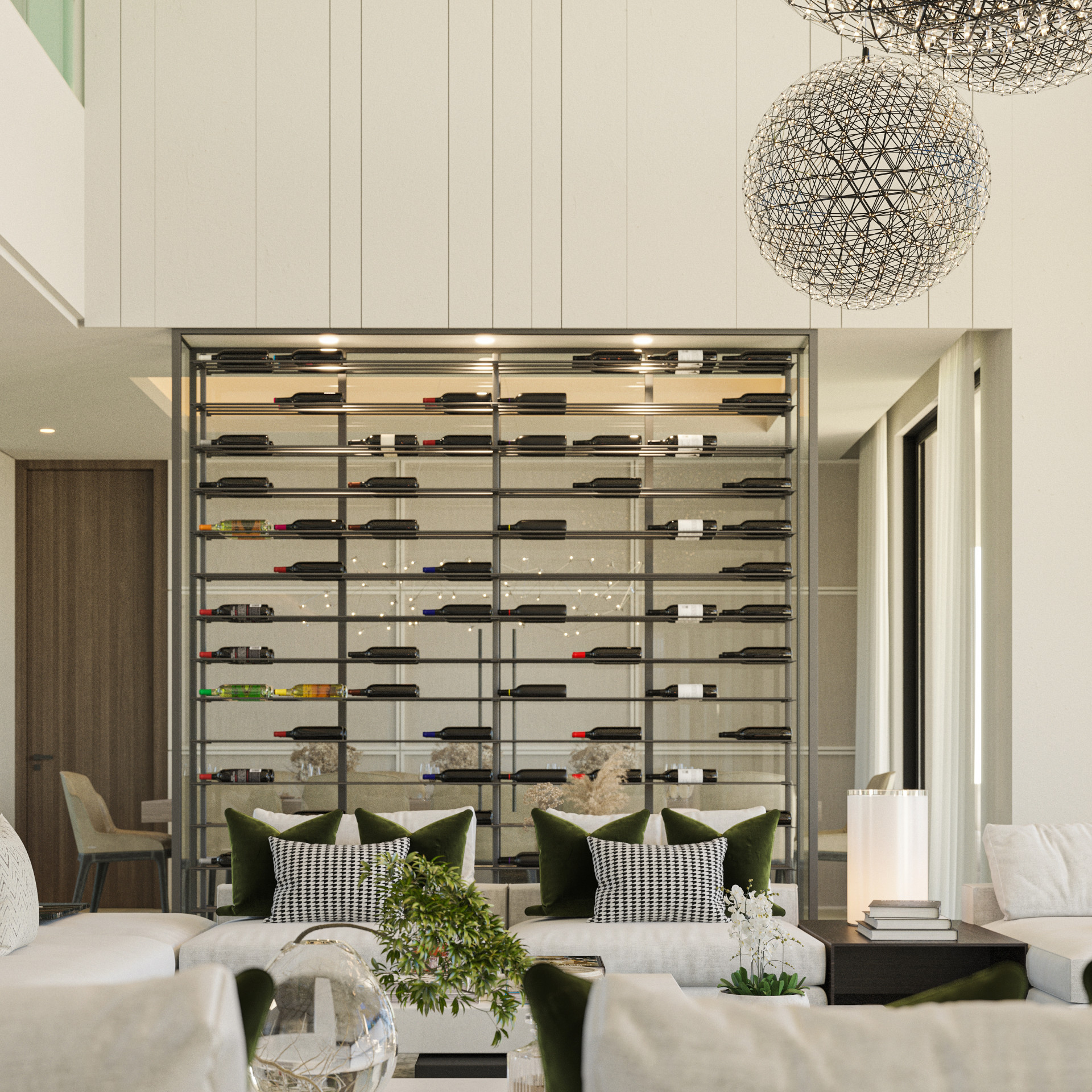Step in to a huge double height entry hall leading into the almost 10m wide double height lounge.