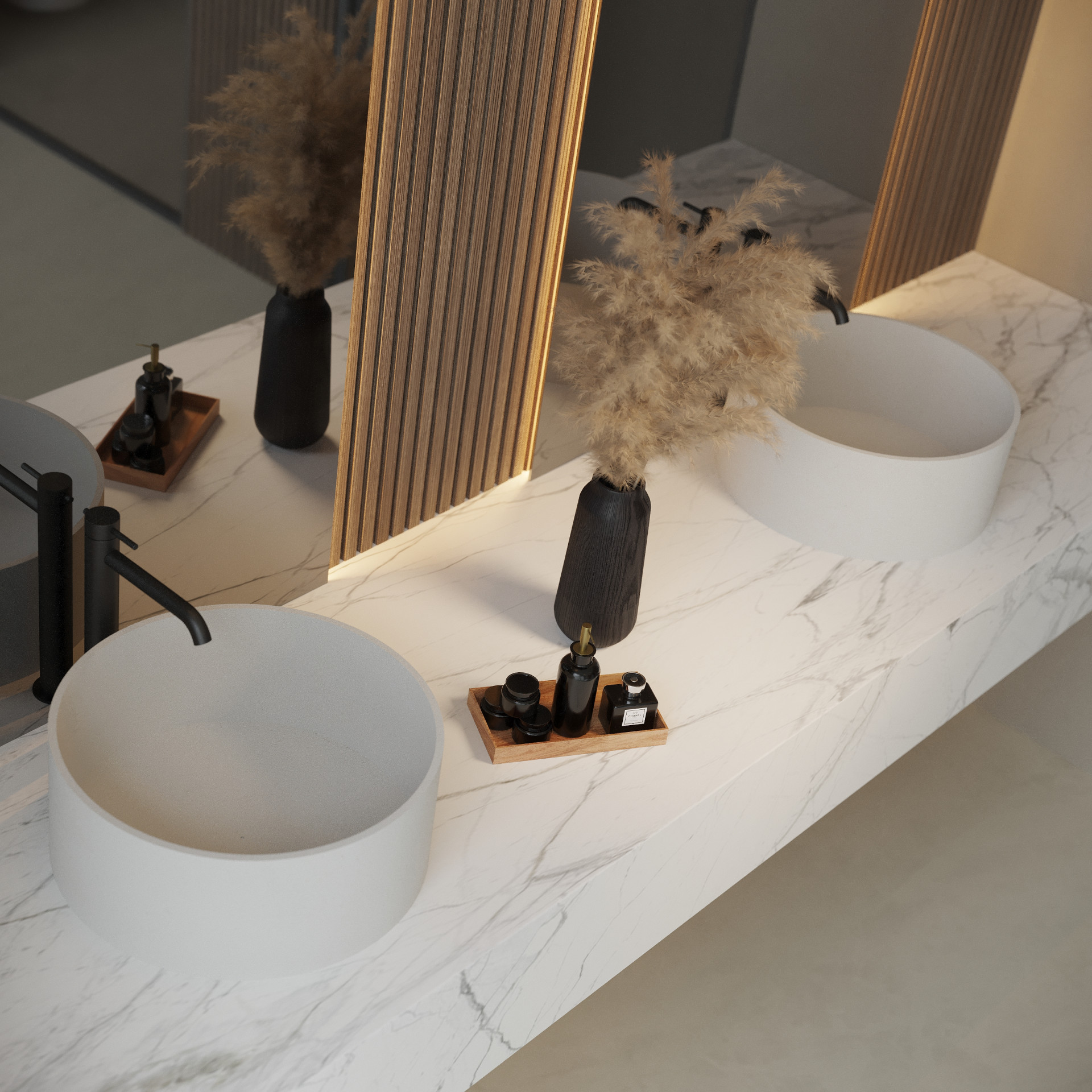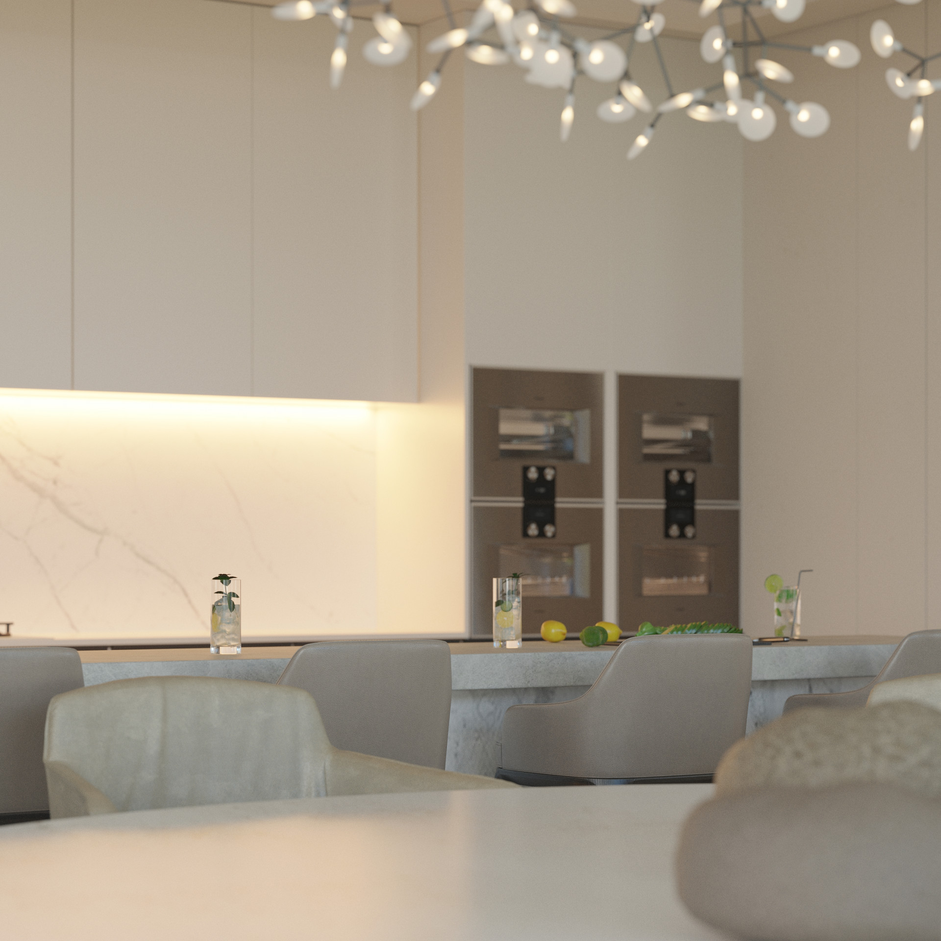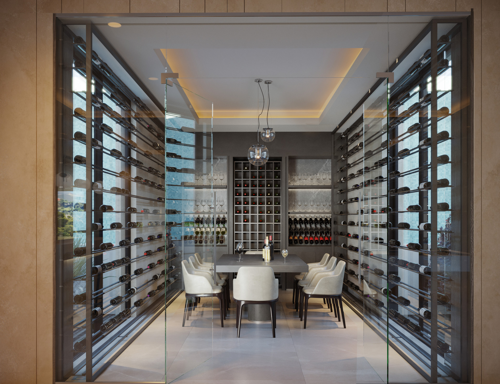 Upstairs, across the entire West wing, is the elegant master suite which boasts of a custom made smoked glass walk- in closet leading into a luxurious ensuite bathroom with magnificent sea views.