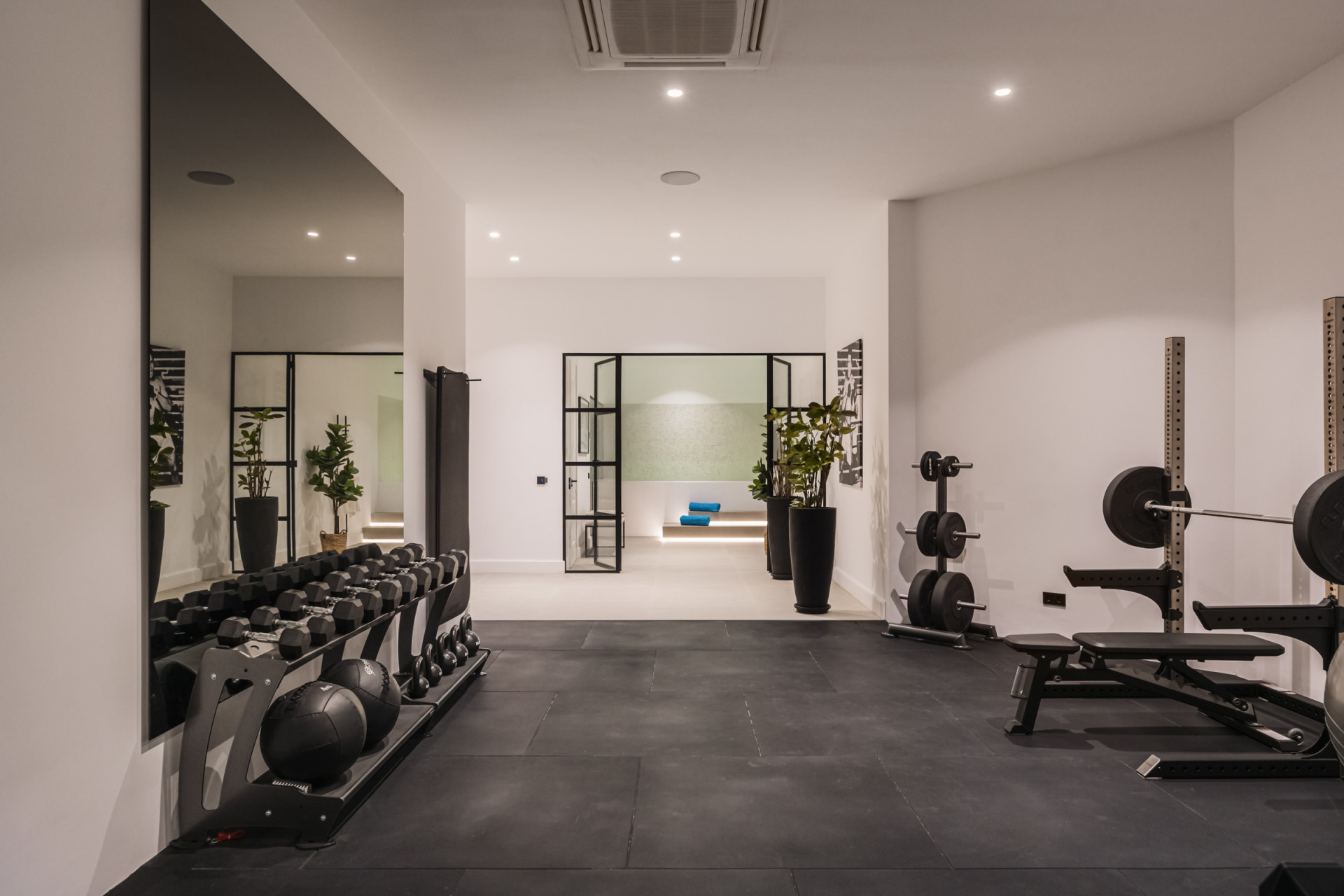 In the basement, Villa Olivia continues to impress with a fully stocked wine cellar, a state-of-the-art cinema room, a gym, a spa featuring a plunge pool, laundry facilities, and a spacious garage.