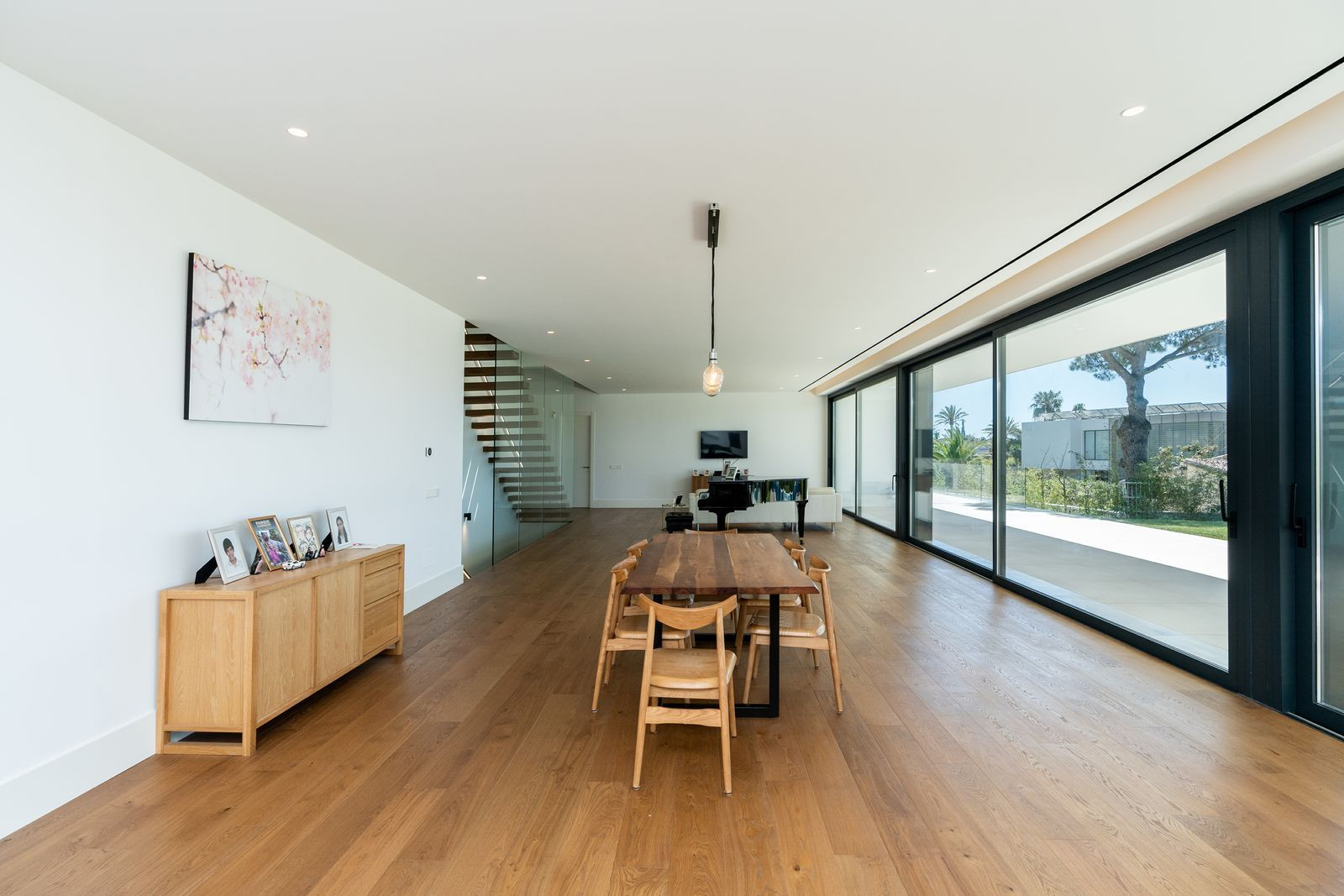 Discover this amazing eco-friendly family villa in Marbesa, known for its beautiful beaches and convenient location near amenities and the protected natural wonder, the Dunes, and Cabopino harbor. Set on a spacious 2.500-square-meter plot with palm trees and tropical plants, this newly built, south-facing villa boasts underfloor heating in bathrooms. Almost every room offers fantastic sea views of the Mediterranean and the African coastline. The villa features an open-plan kitchen with top-of-the-line appliances, flowing into a spacious living room with sliding doors leading to a large covered terrace and BBQ area. On the first floor, you’ll find 4 roomy en-suite bedrooms plus laundry area, while the lower level houses 1 more en-suite bedroom. This exceptional property adheres to the latest construction standards. Additional features: Skylight on first floor. Solar energy.