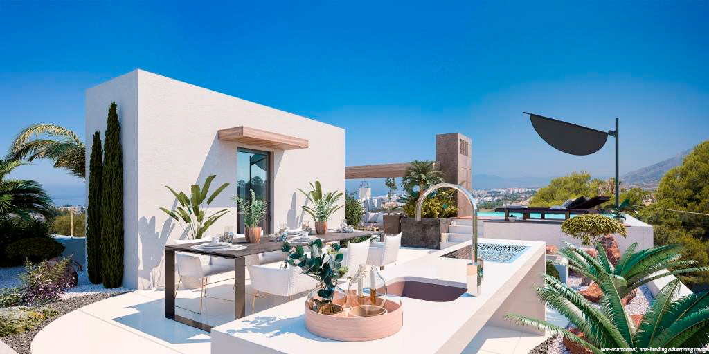 The project has 2 types of houses, terraced and semi-detached with 4 and 5 bedrooms, with a basement, ground and first floors and a solarium which includes a private pool with stunning sea views.