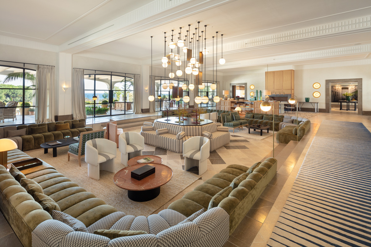 This truly impressive villa opens up to a stunning grand salon with multiple lounge spaces built within a sunken area, each section staying true to its eccentric style, with an impressionable brass centre chandelier.