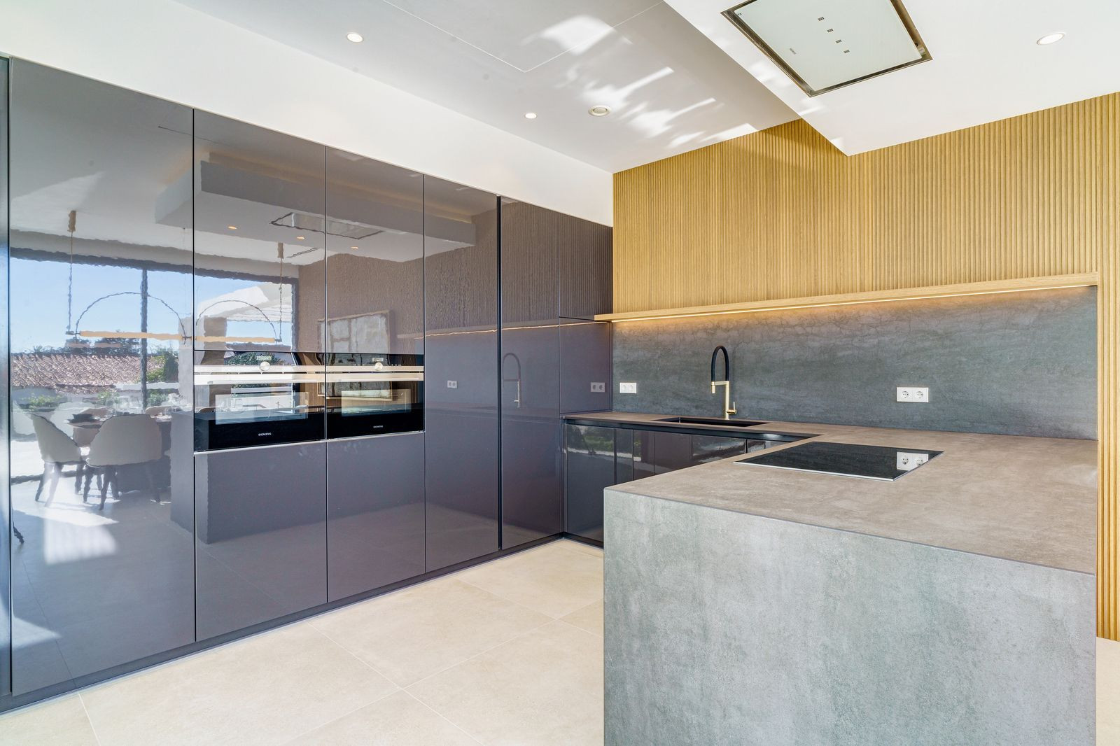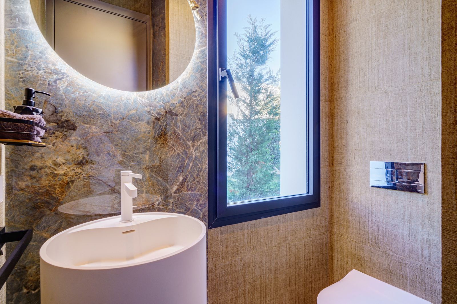 The laundry room, machine room, bathroom and three further spaces for gymnasium, cinema room, games room plus another extra room are situated in the large basement.