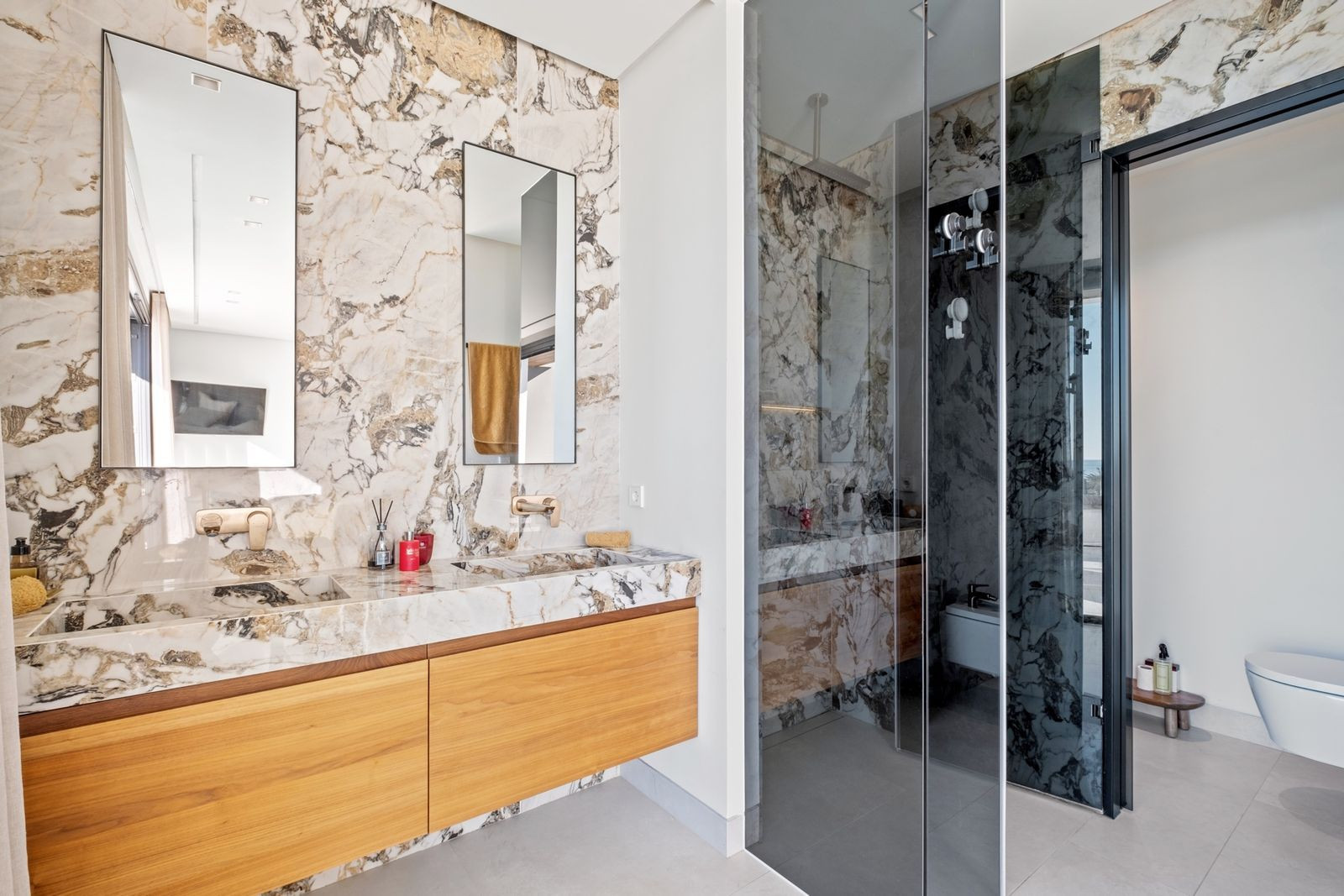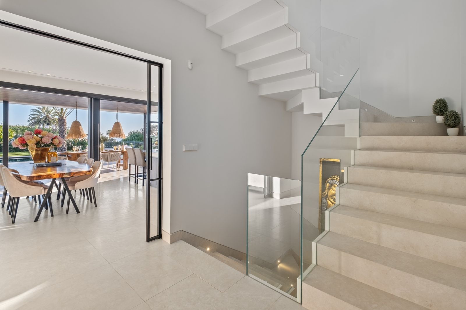 Boasting 4 spacious bedrooms and 5.5 bathrooms and fitness and relax room, this residence has been designed to maximize comfort and elegance. The upper floor features the master suite, with an open-concept bathroom and direct access to an impressive private solarium with a Jacuzzi, perfect for enjoying Mediterranean sunsets.