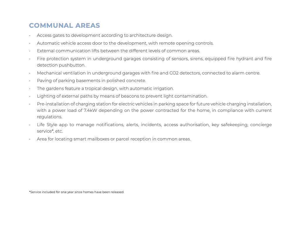 Fully fitted and equipped Italian design kitchen, 2 parking & storage room. Communal areas: 2 swimming pools, turkish bath, sauna, fully equipped gym, co working area, barbecue area & much more.