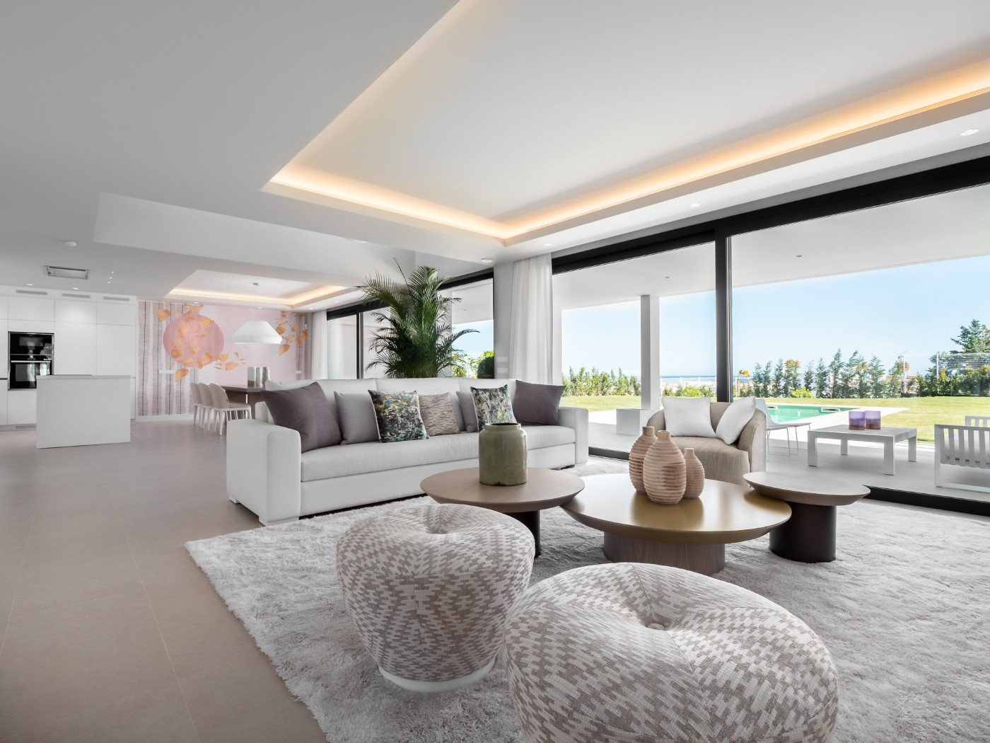 The finest materials provide a warm and homely atmosphere to this 586 m2 villa set on a flat plot with sea views, rooftop, cover garage, private pool.
