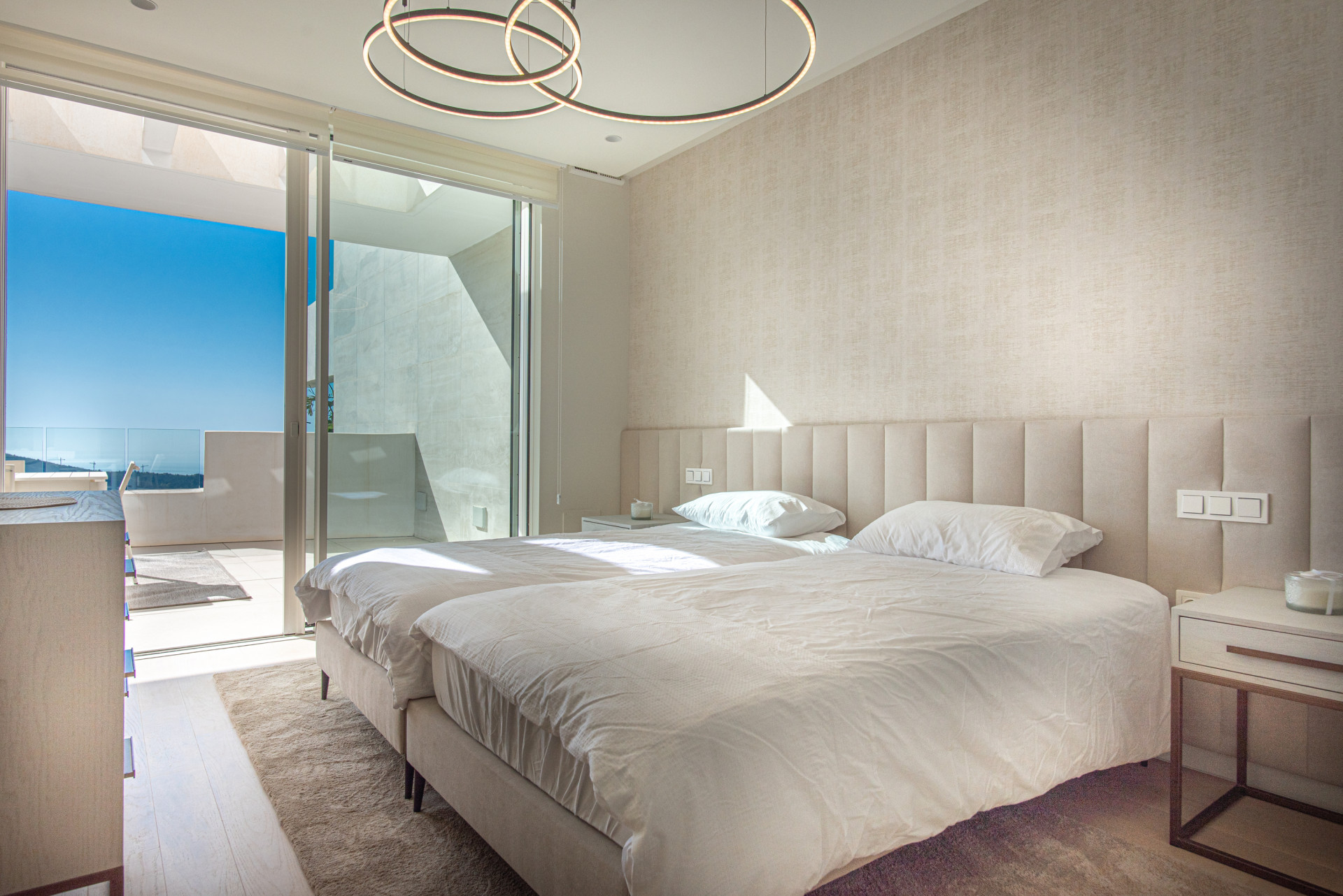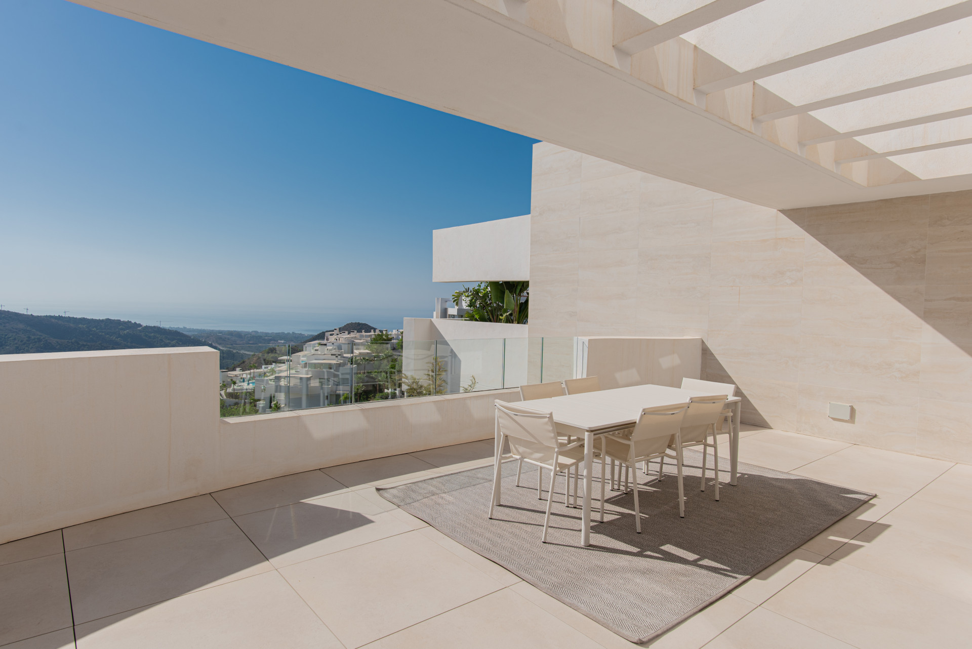 Palo Alto. This 1st-floor luxury apartment has a spacious and beautiful interior leading out to a huge terrace that offers fantastic panoramic views of the Mediterranean Sea and mountain views with the most spectacular sunrises you can view.
