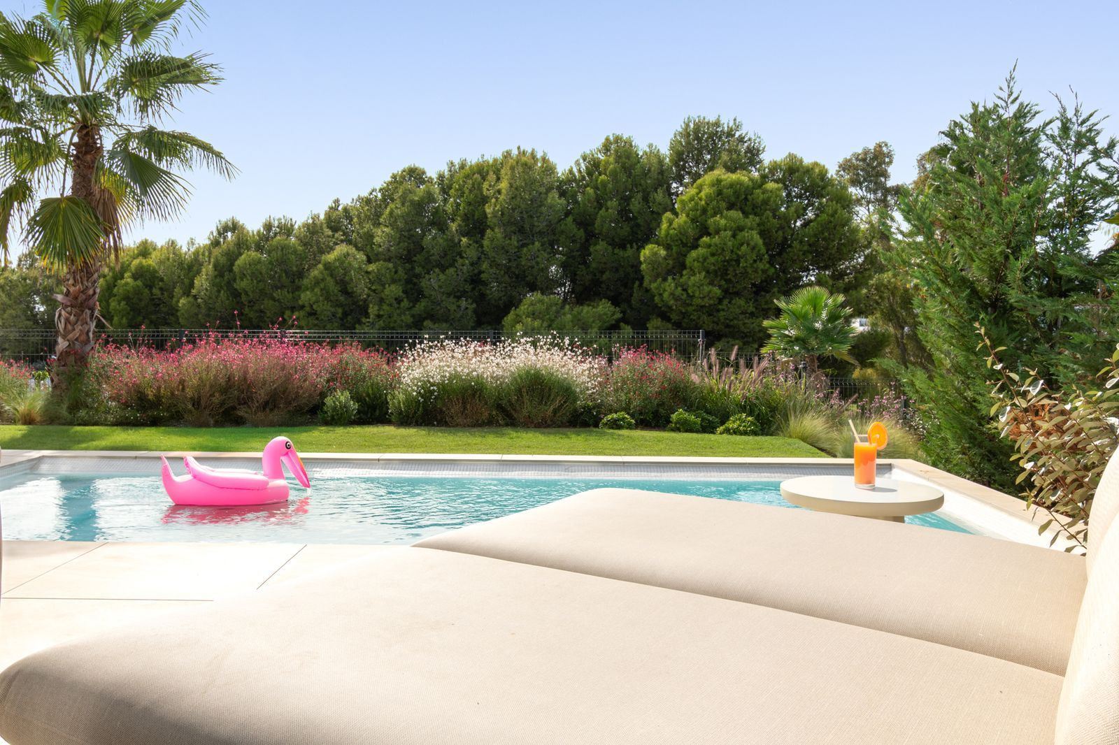In a privileged location in East Marbella, right next to the prestigious Santa Clara Golf course, this extraordinary villa perfectly combines the Mediterranean lifestyle with the most modern residential comfort. Just a few minutes from the sandy beaches, Marbella’s town centre and the exclusive Puerto Banús, you will enjoy a residential setting that offers peace, privacy, and excellent connections in equal measure.