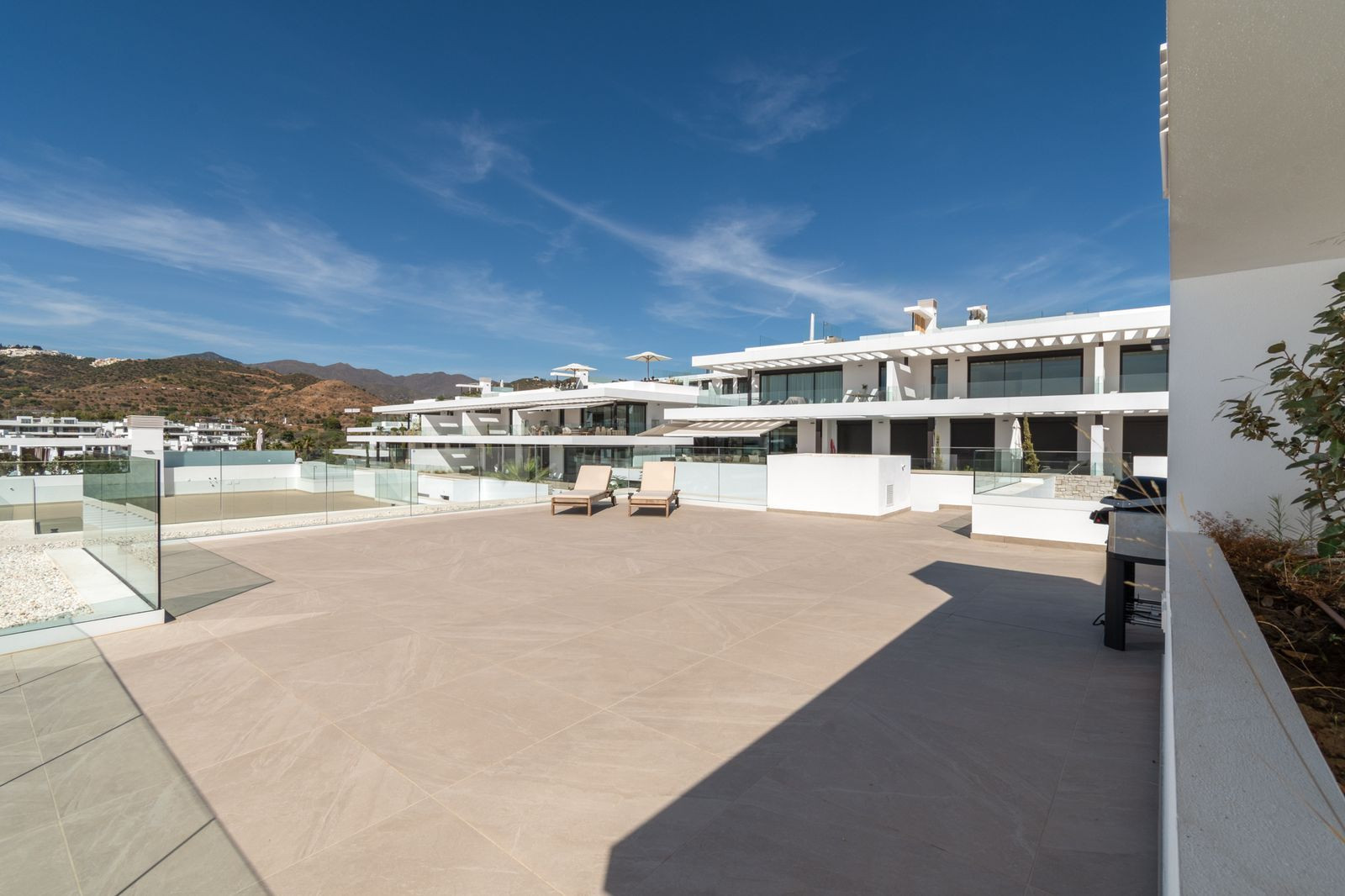 The elegant living-dining area flows seamlessly into the open-plan designer kitchen, creating a welcoming atmosphere for a sophisticated lifestyle and convivial moments. From here, you have access to spacious terraces with pleasant views over the garden, the pool, the golf course and, in the distance, the mountains. In addition, there is a private solarium. All of this invites you to make the most of the Mediterranean climate. Two private parking spaces complete the offer.