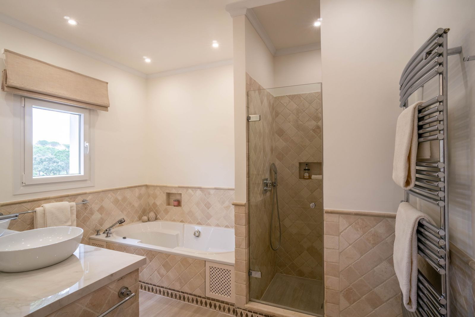The villa also features a custom-made kitchen with Miele appliances, as well as practical spaces including a laundry room, technical room, gardener’s room, storage areas, and wine cooling room, all thoughtfully designed.